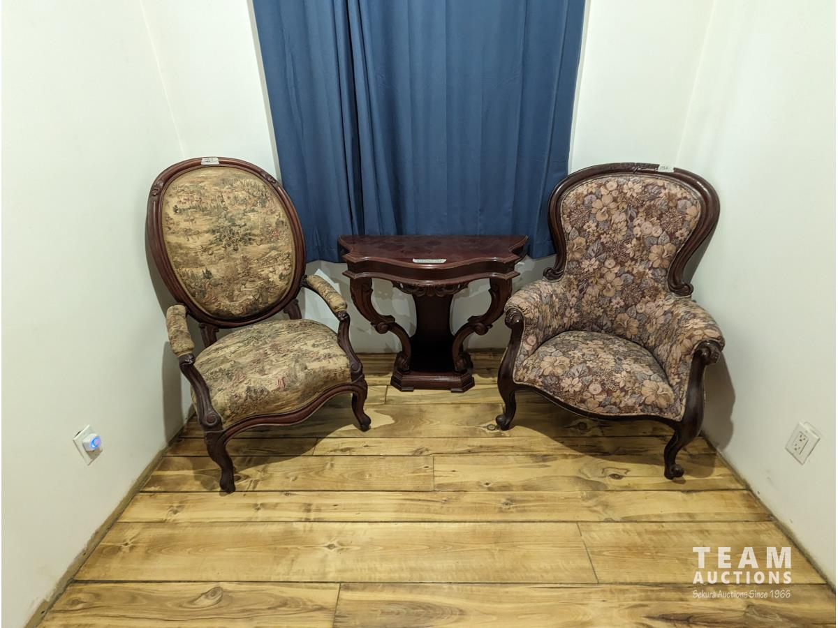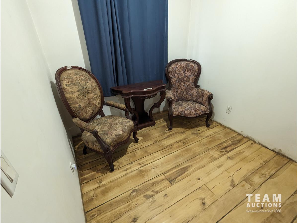 1111 (2) Antique Chairs & Side Table