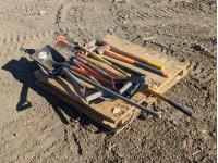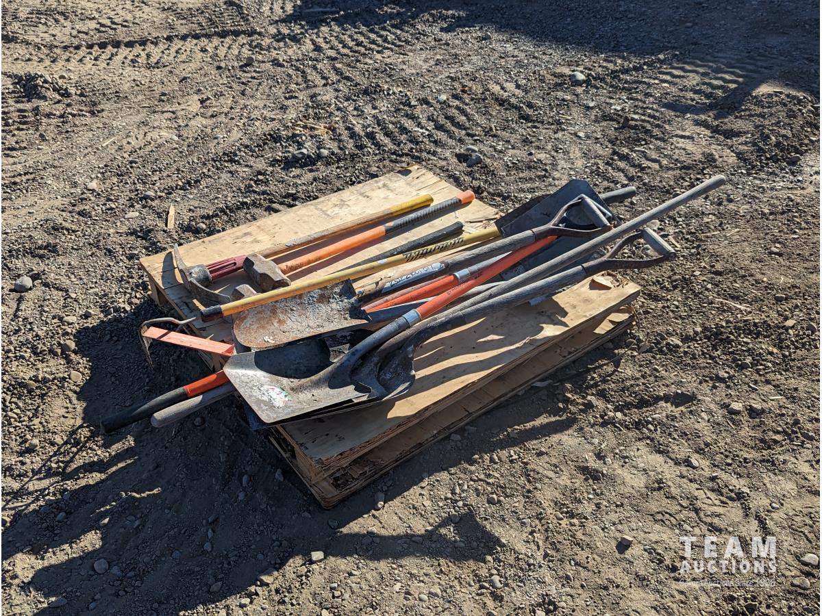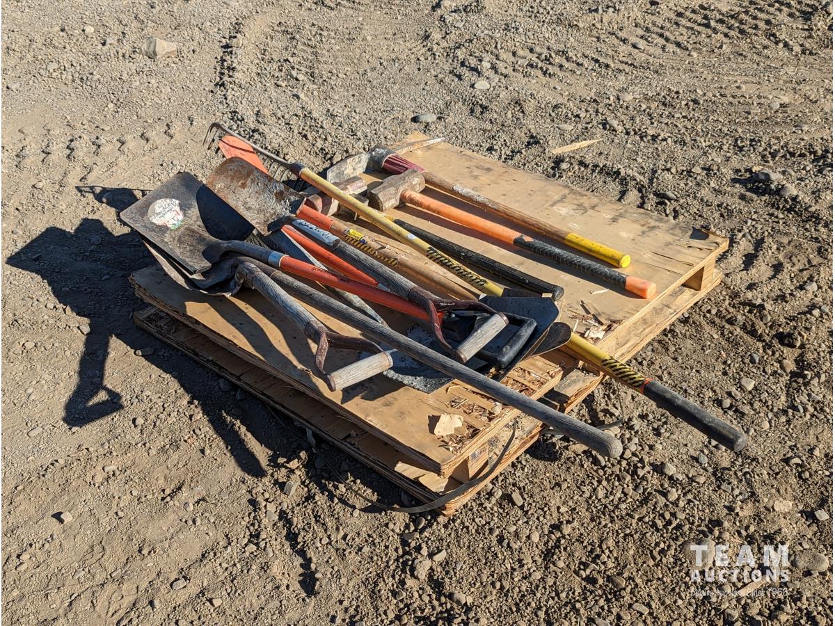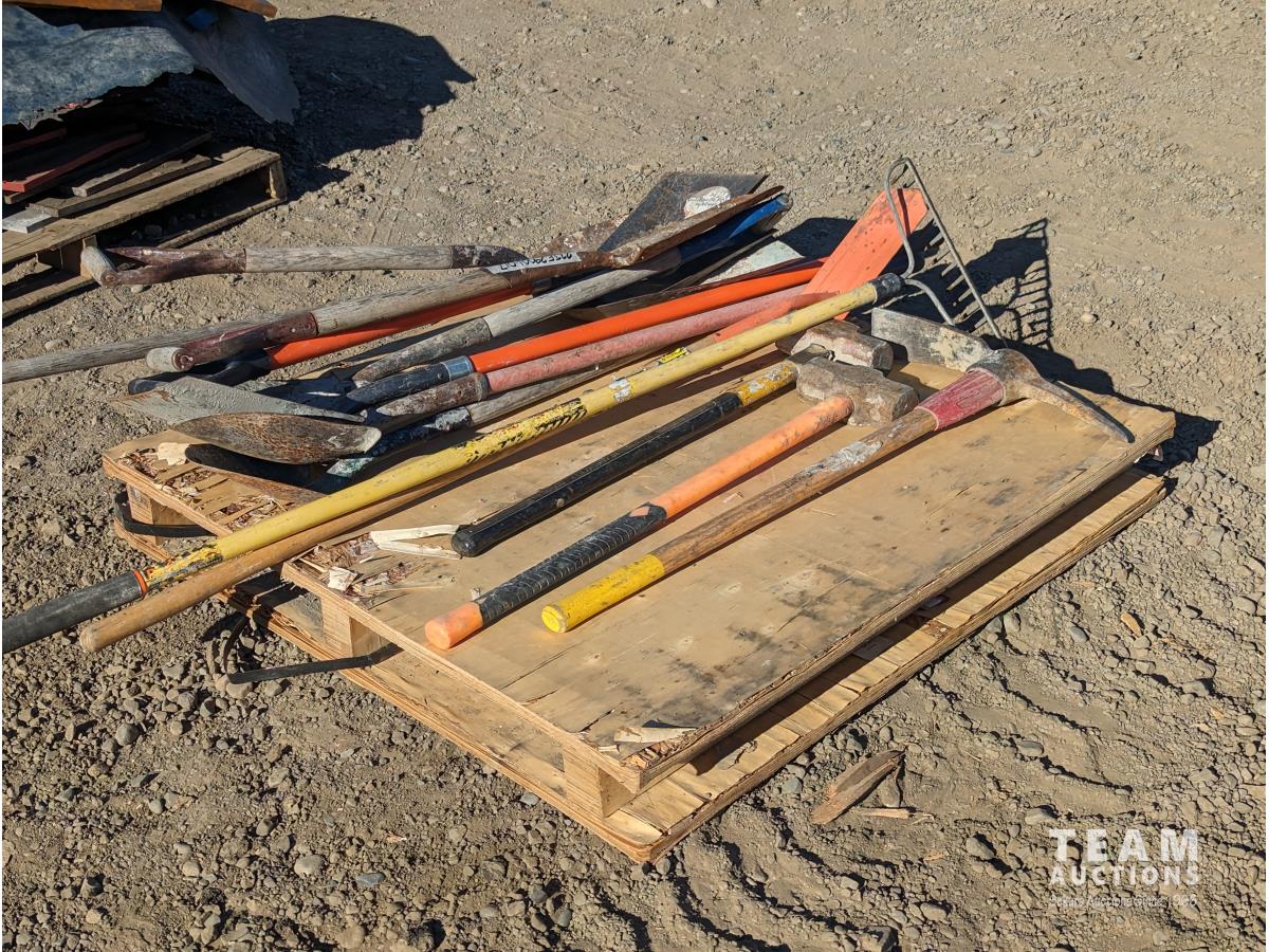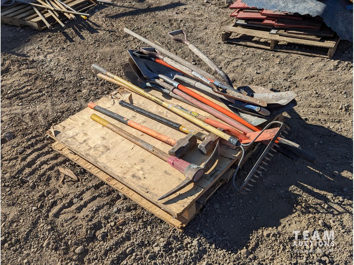 1414 Qty of Shovels, Rake (2) Sledgehammers & Pick Axe