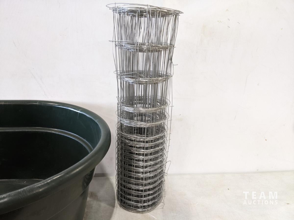 1846 150L Plastic Trough and Roll of 28 Inch Cage Wire (Unused)