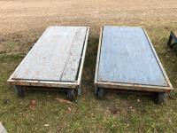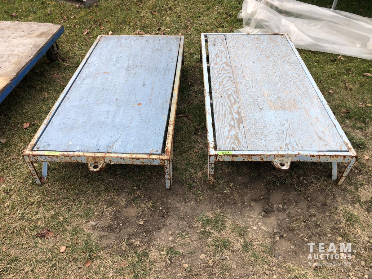30 inch w x 60 inch l, 3/4 inch plywood deck, steel frame, rubber covered steel wheels