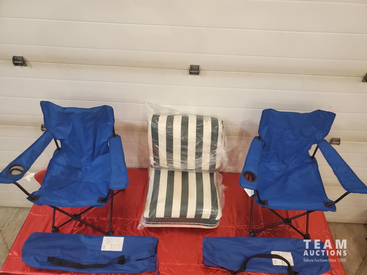 1092 (2) Sunbrella Patio Seat Cushions, (2) Folding Quad Chairs with Carrying Bag