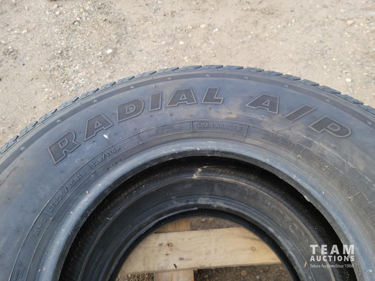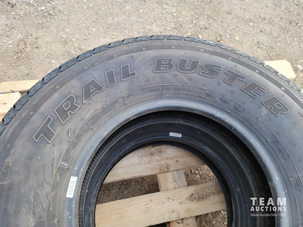2213 (2) Trail Buster Radial A/P LT235/85R16 Tires and 14 Inch Firestone Deluxe Champion A78-13 Tire