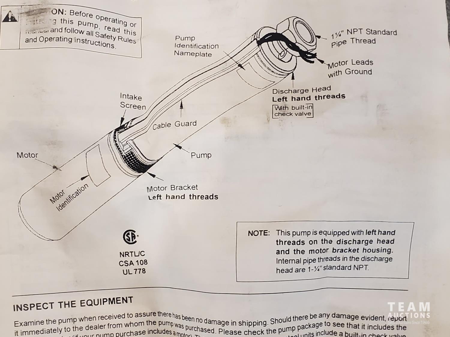 1187 4 Inch Deep Well ¾ HP Pump & Control (Unused)