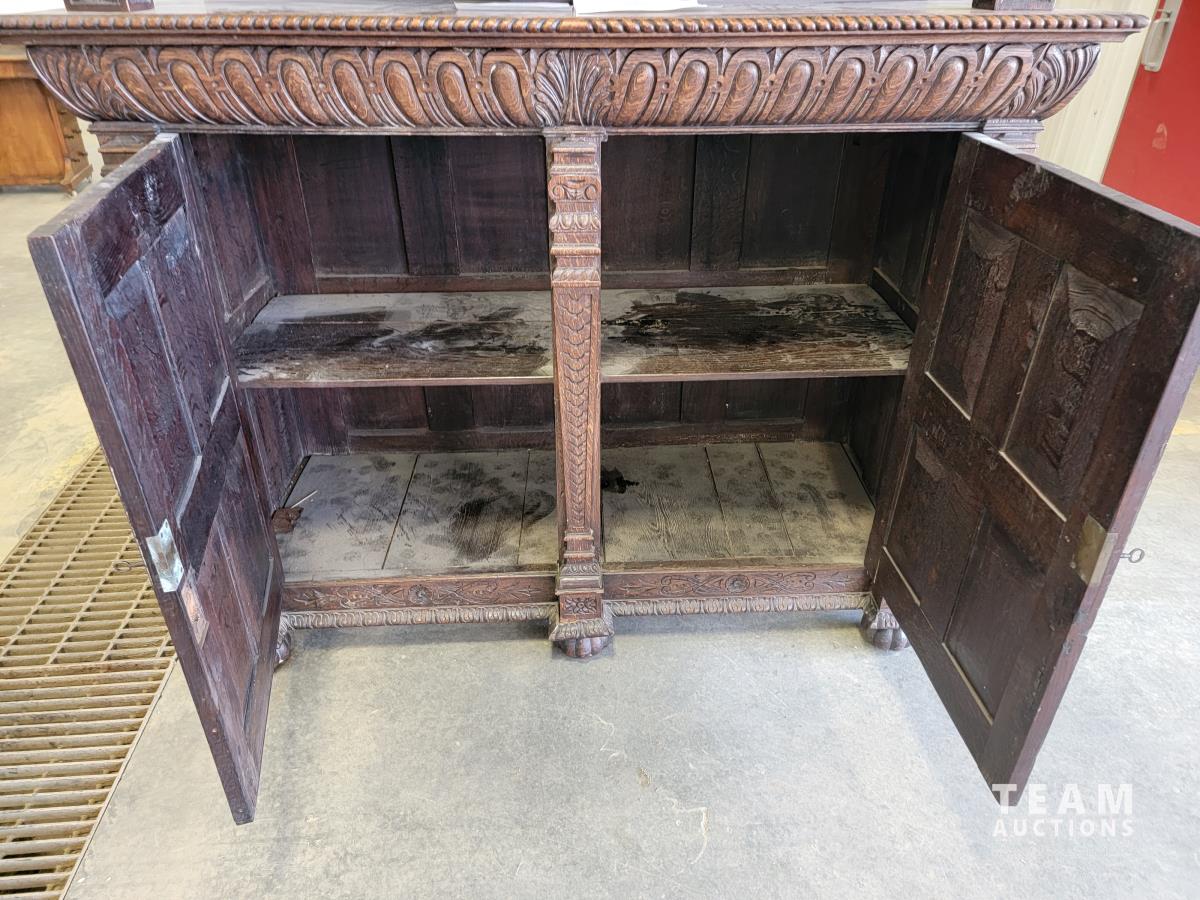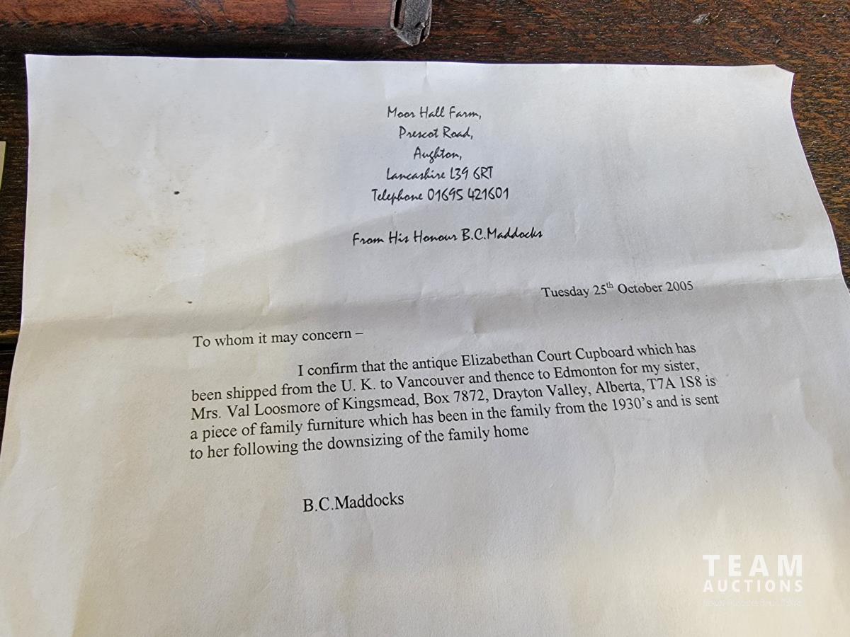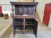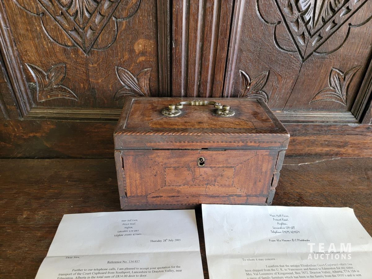2575 Antique 16Th Century Elizabethan Period Cupboard with Antique Two Compartment Tea Caddy