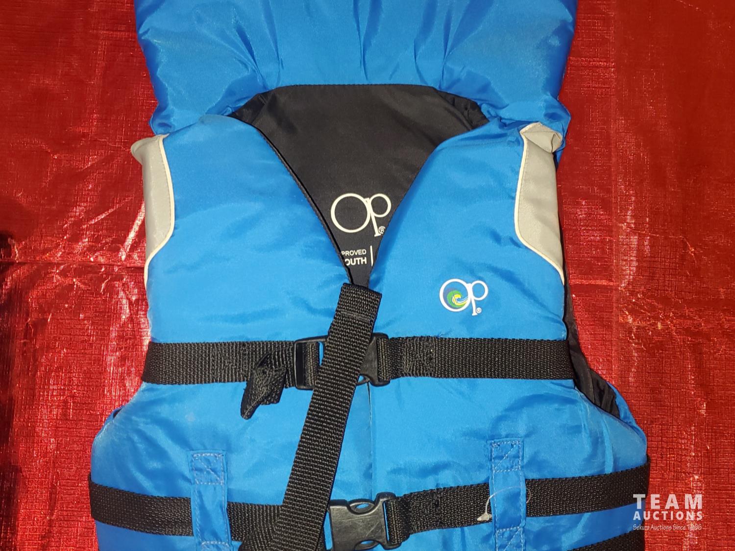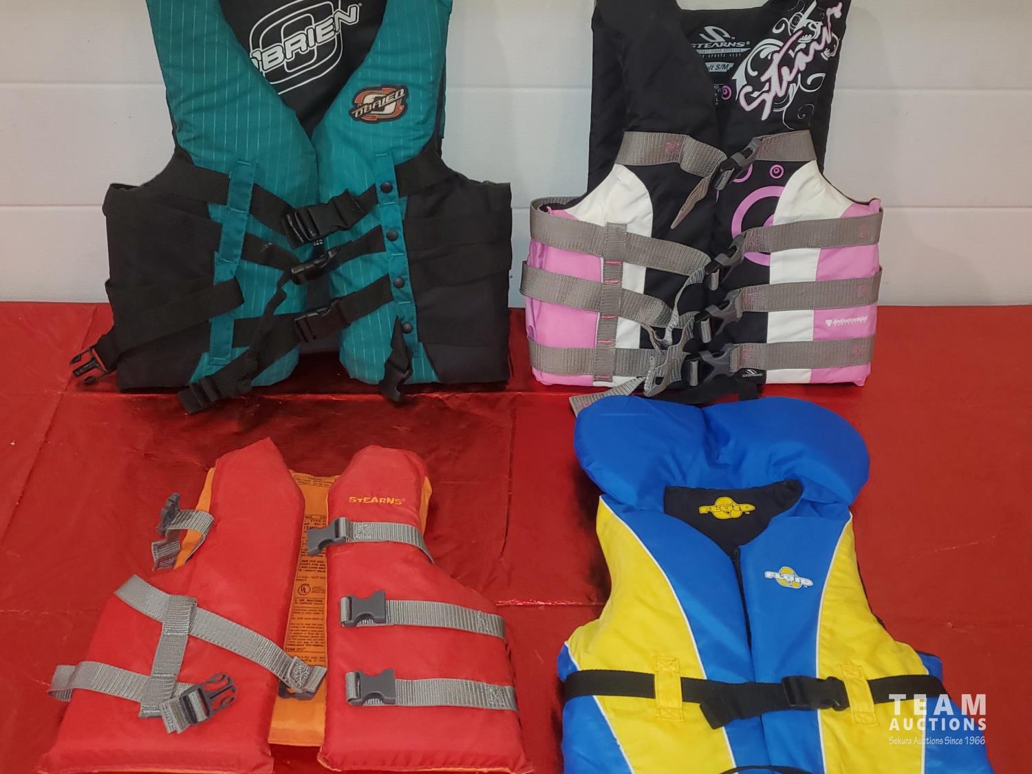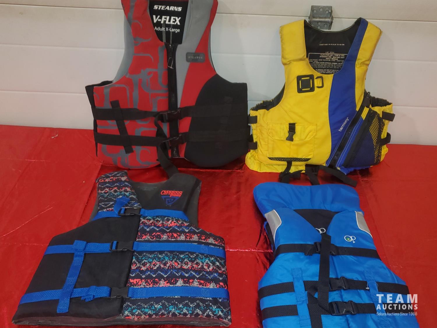 (4) Adult X-Large, Medium, Small/ Medium, Youth, (4) Adult X-Large, Medium, Youth Small, Youth, Rescue Rope and Float, Small Bow Anchor, Paddle, Flare, Tiedowns
