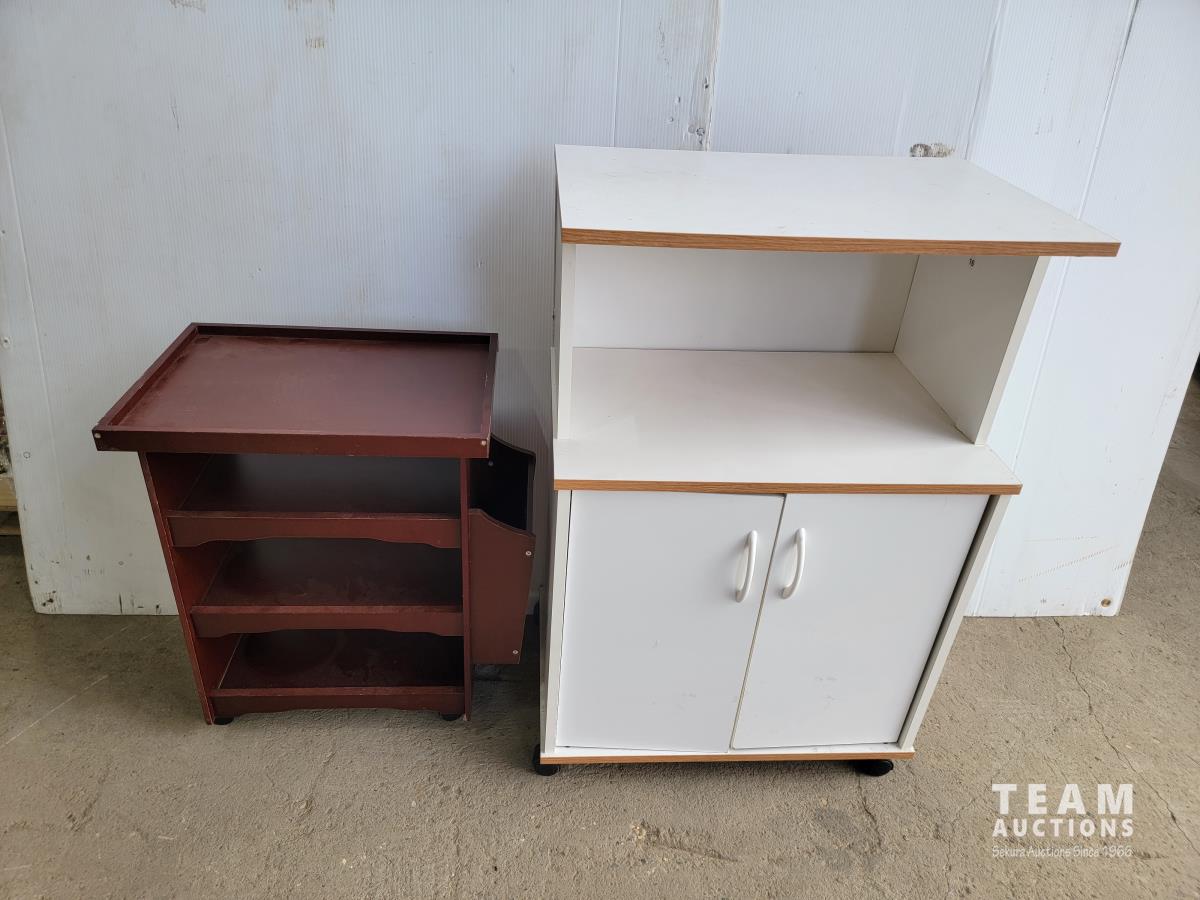 1322 Microwave Stand on Wheels and 3 Tier Magazine End Table on Wheels