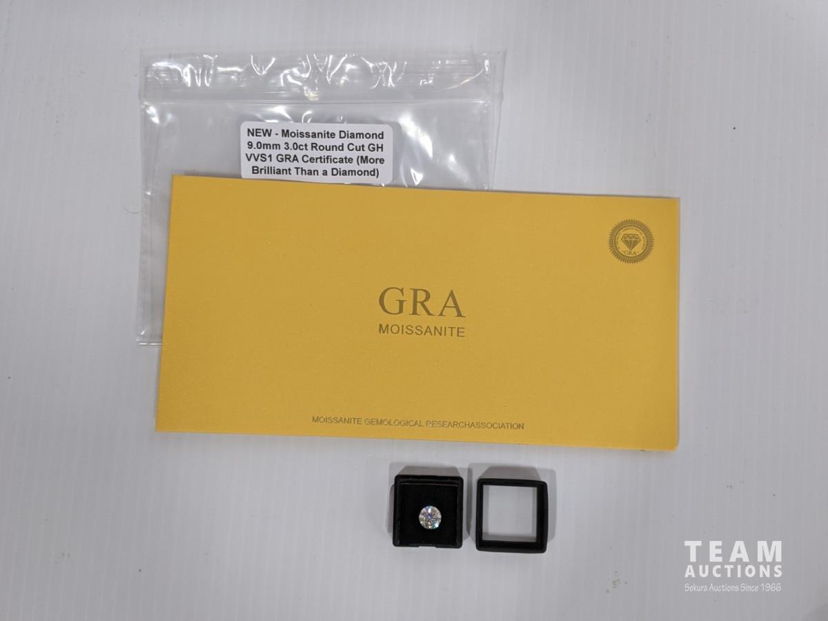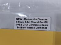 2149 Moissanite 3.0Ct 9.0 mm Round Cut Diamond (Unused)