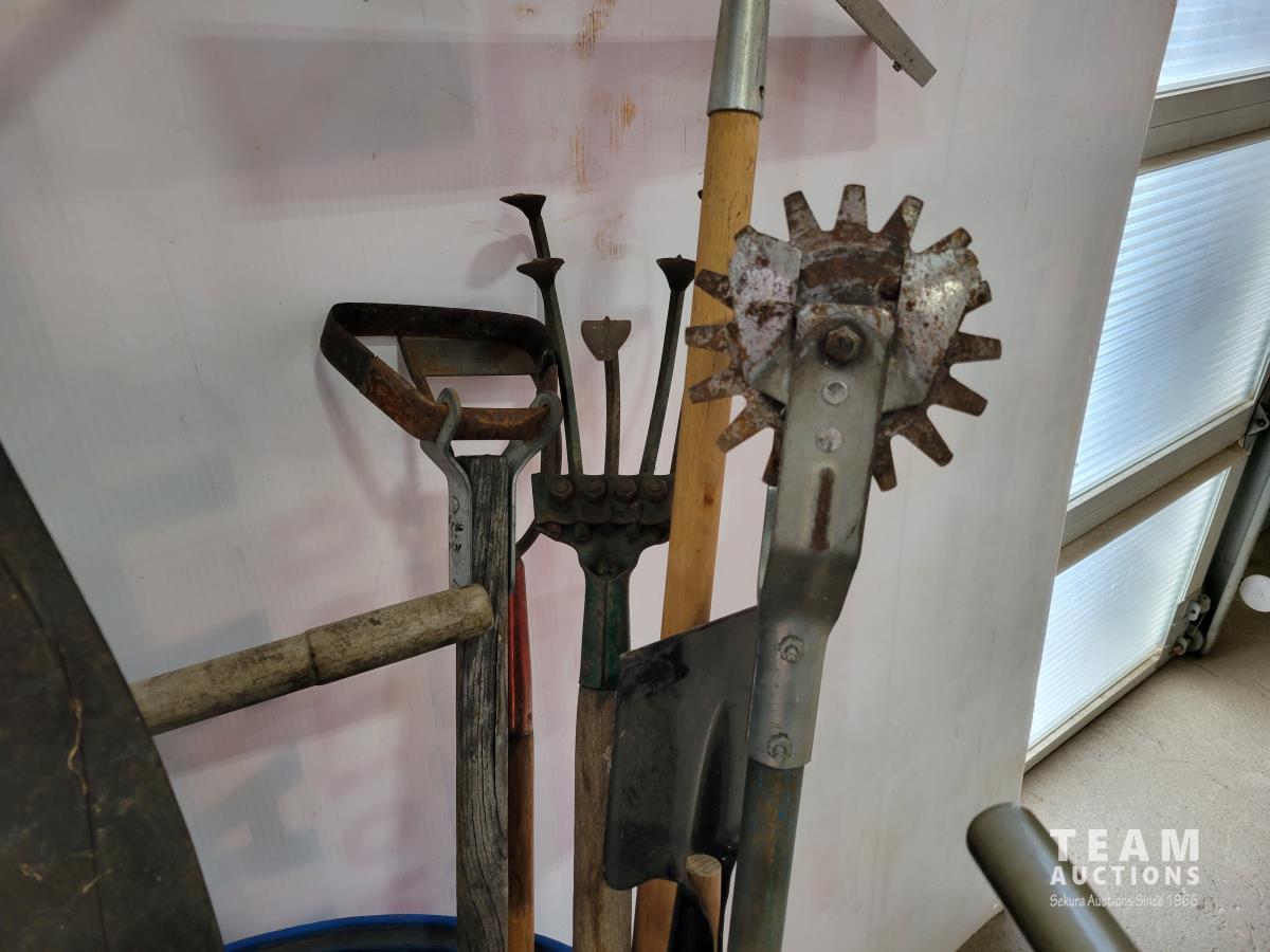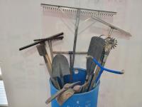 Rakes, squeegees, pick axe, hoes, ice chippers, post hole digger