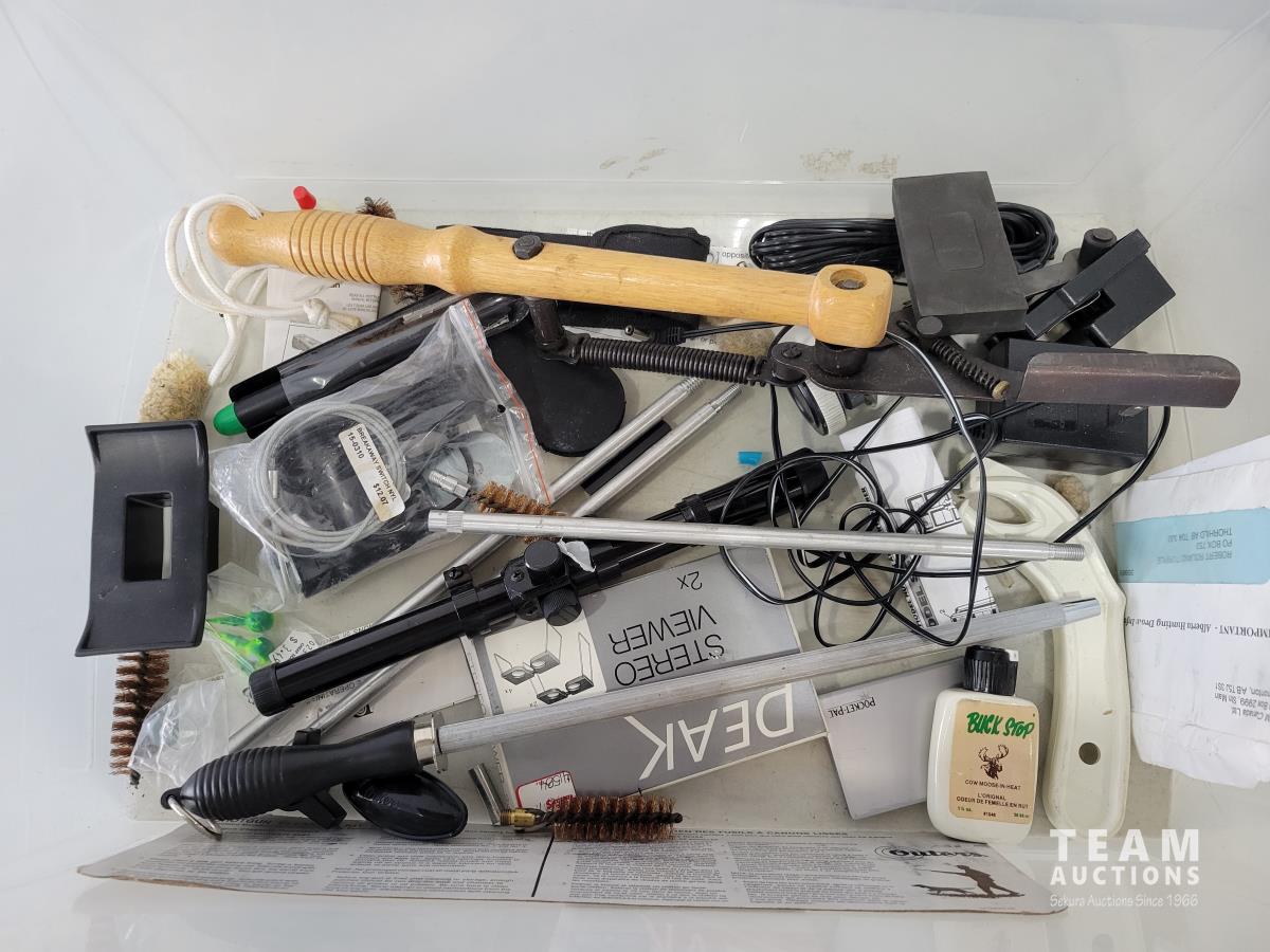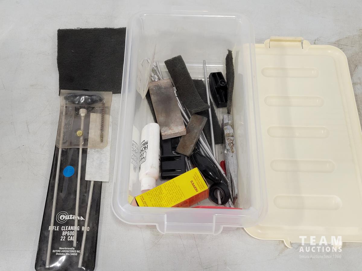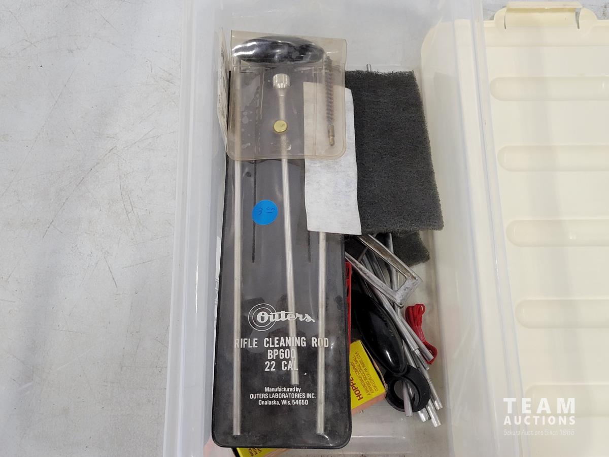 1699 Qty of Gun Cleaning Supplies and Small Animal Trap