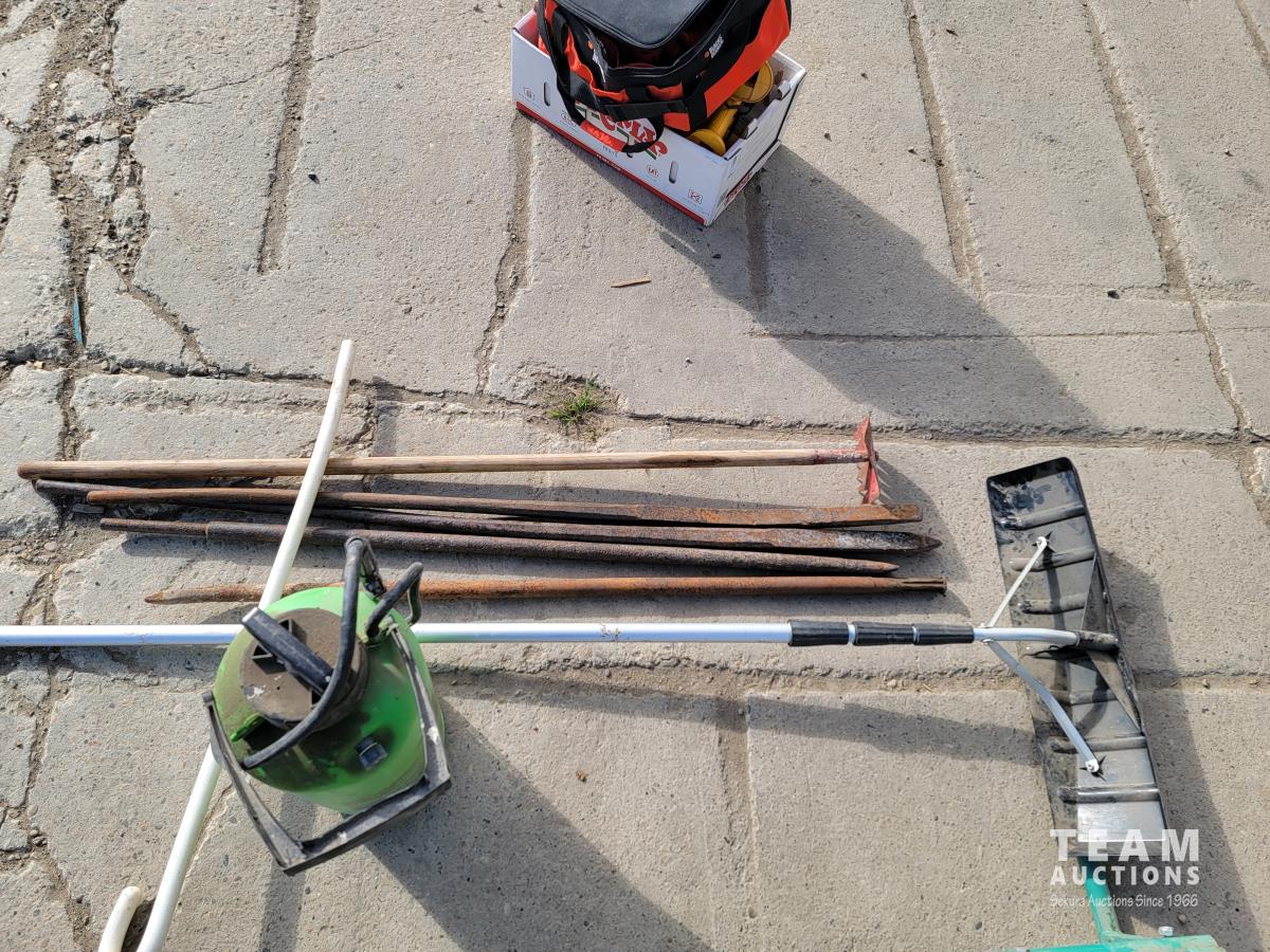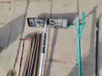 Spray Doc, log roller, chimney brush, roof rake, pry bars