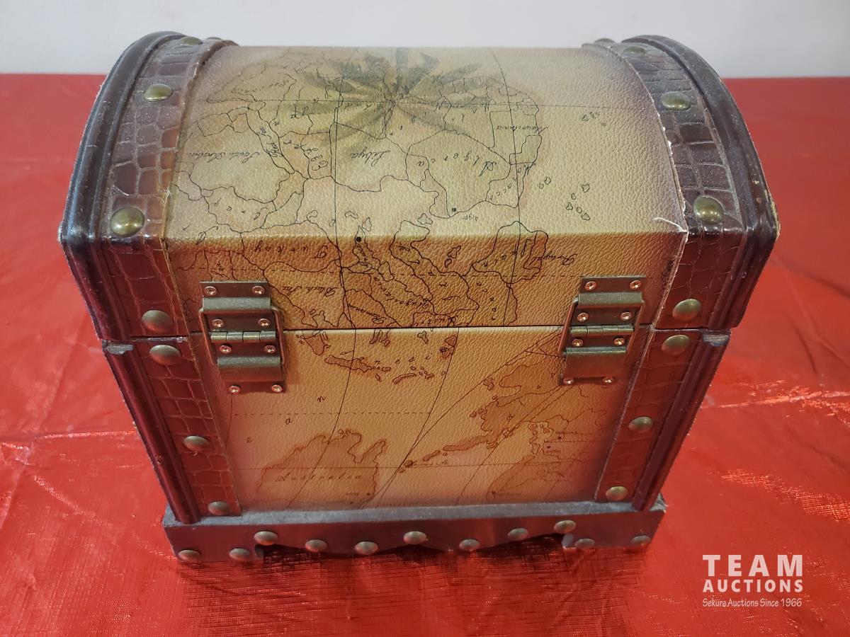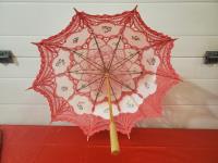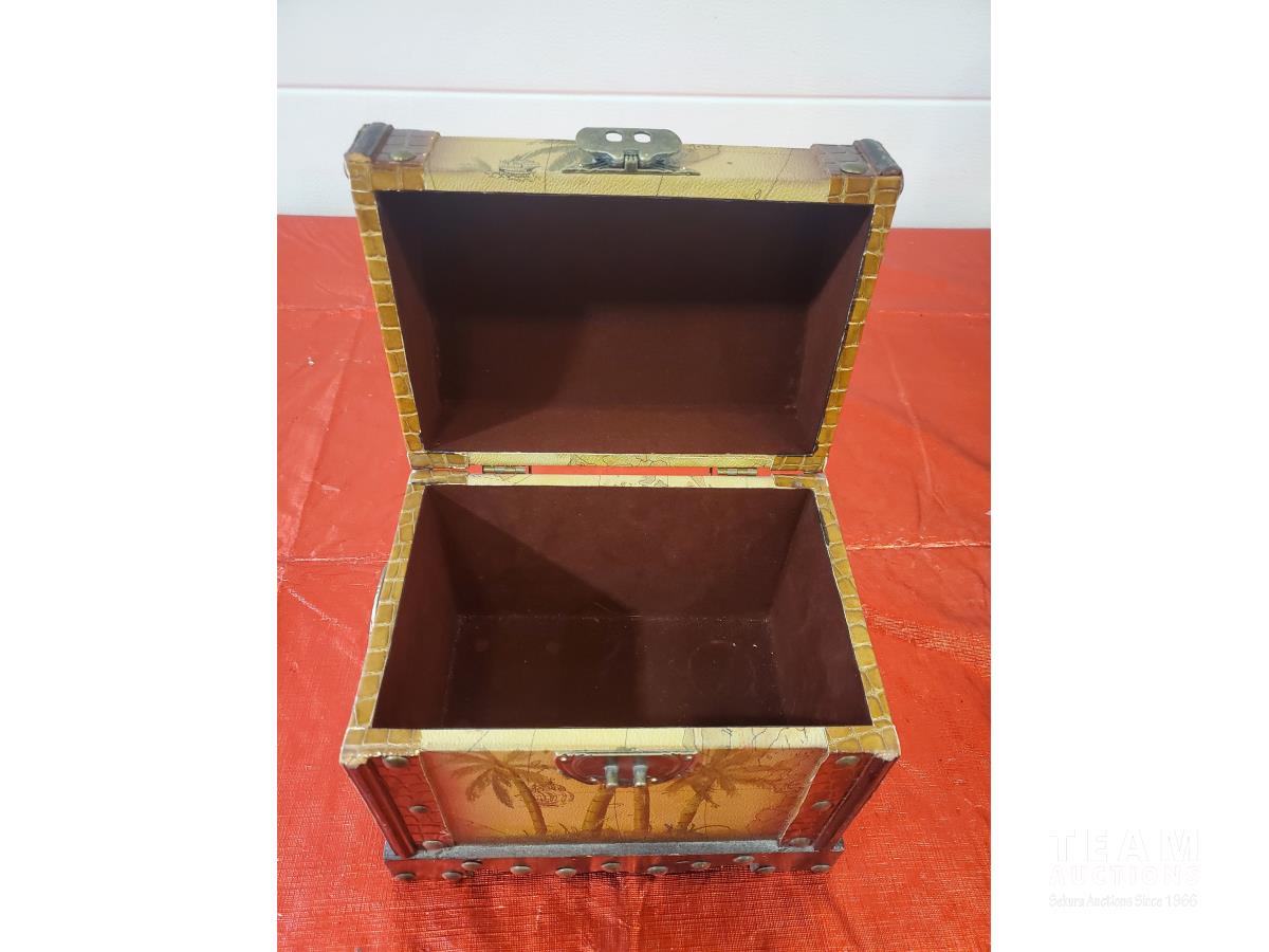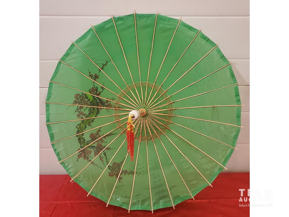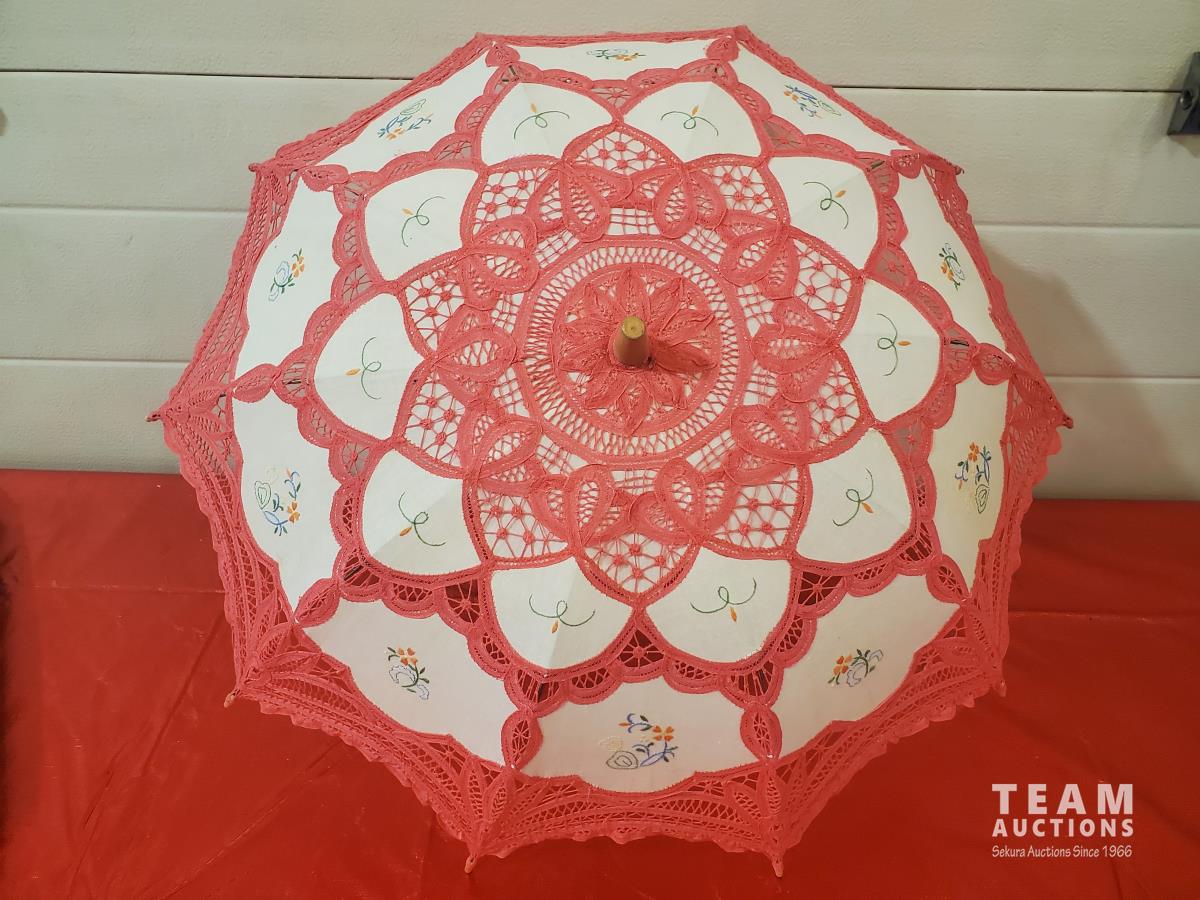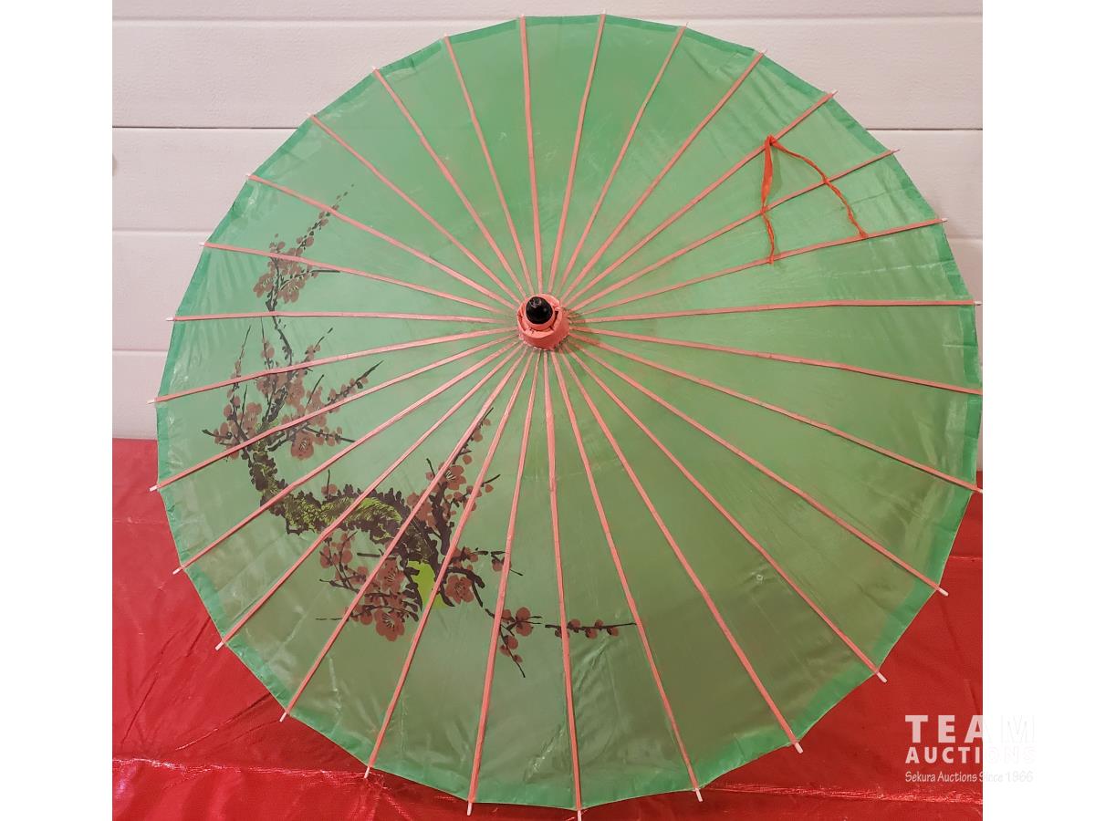 Storage Trunk / Living Room Treasure Chest Collection Cabinet, Vintage Small Brown Liz Claiborne Purse Unique Design Floral Inside Chain Top, Made in Ireland Antique Ladies Evening Clutch Purse, Framed Lace with Windmill, 100ml Vintage Crystal Style Refillable Perfume, Atomizer Spray Bottle, (2) Parasols - 1 Bamboo Umbrella & 1 Silk Floral Design
