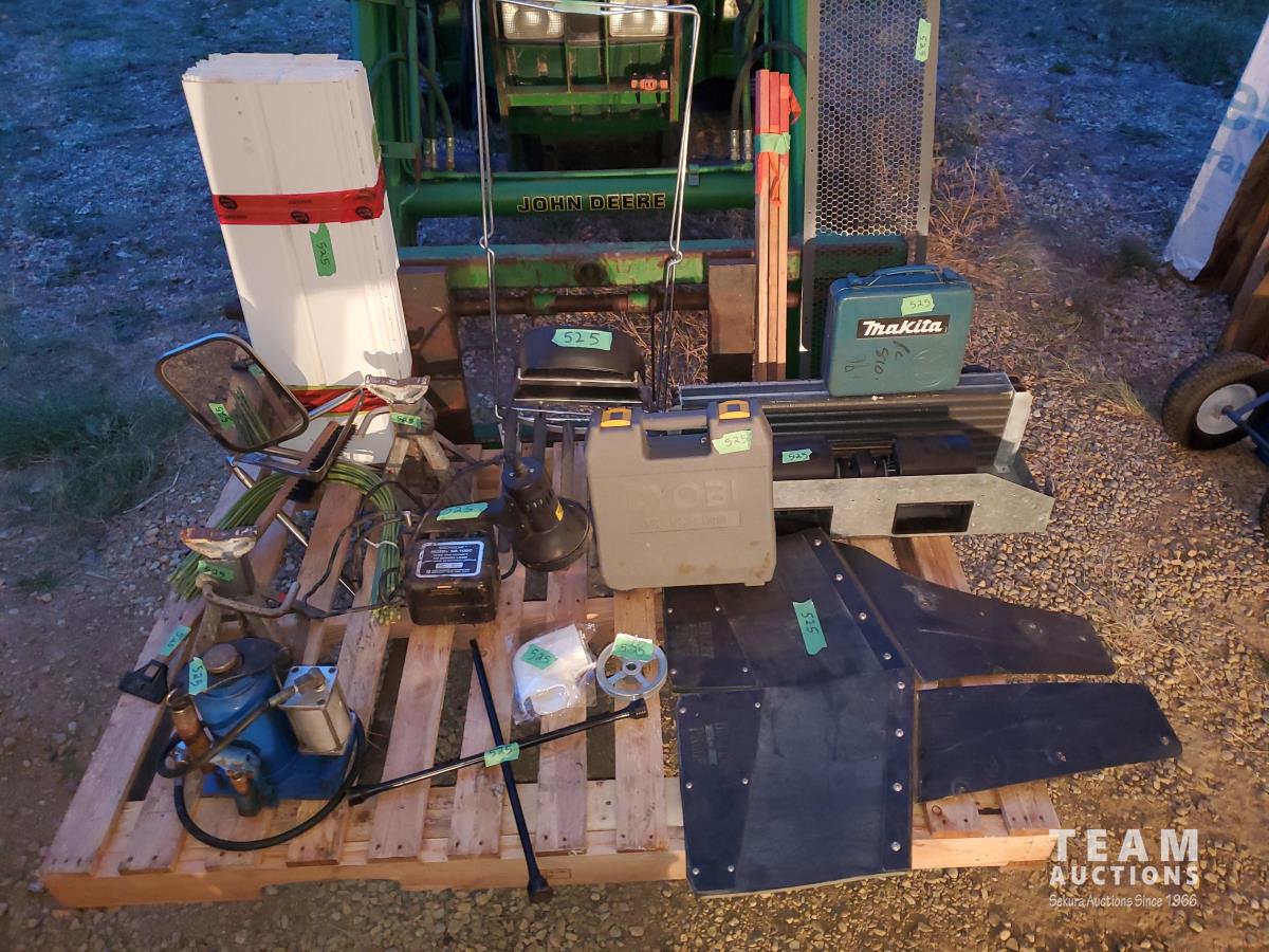Black&Decker 1/2 inch Variable Speed Reversing, Hammer Drill, Makita 3/8 Cordless Drill Charger & Case, (2) Jack Stands, (1) Truck Side Door Mirror, (2) Bullet Proof Truck Mud Flaps, Motorcycle Luggage Rack/ Backrest, RV 12 volt Air Conditioning Evaporator, Bundle of Garden Greenhouse Bows