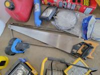 Dakota heated insoles, halogen flood lamps, work lights, hand saws, jerry can, tailgate net, rope, engraver