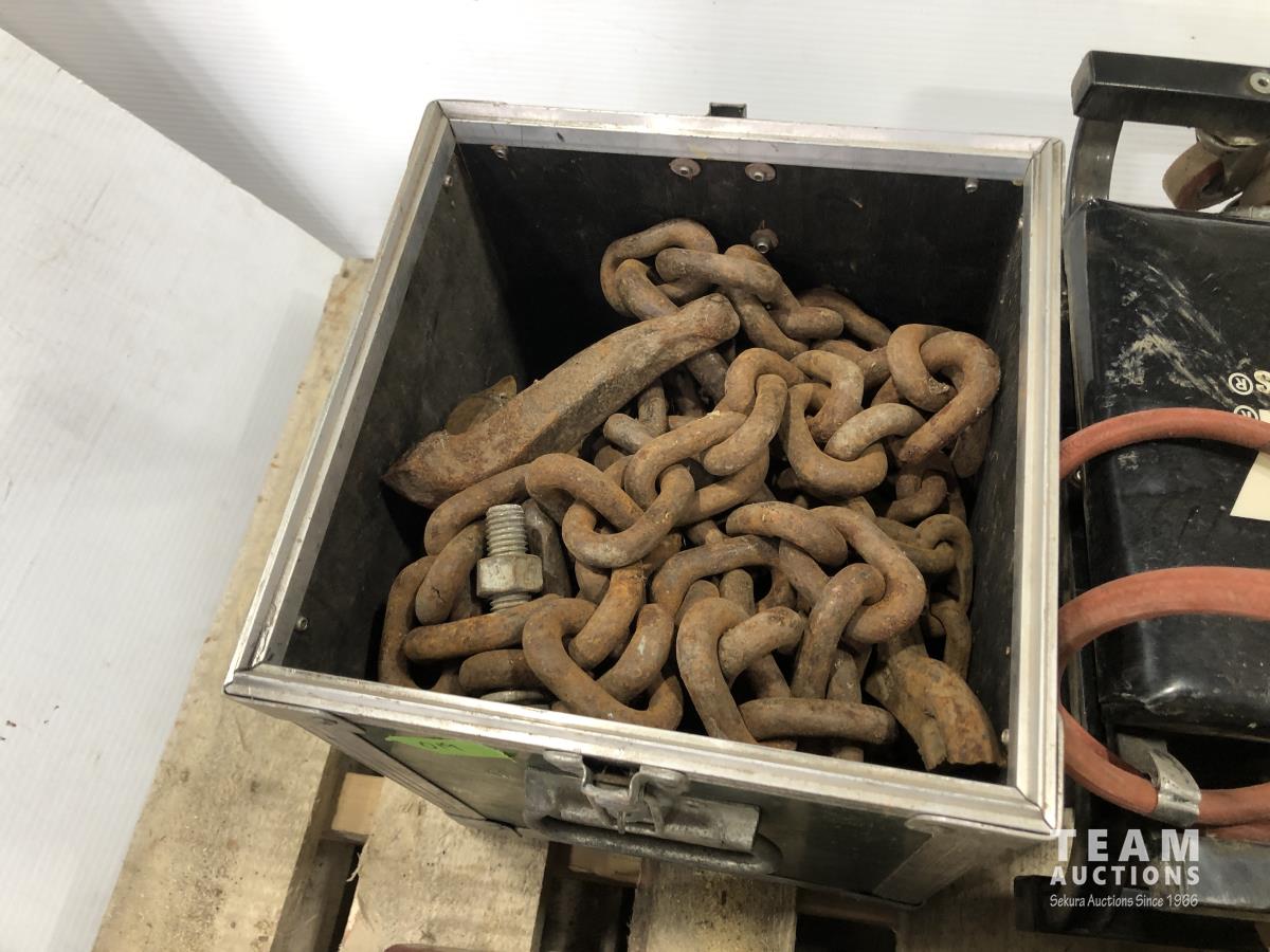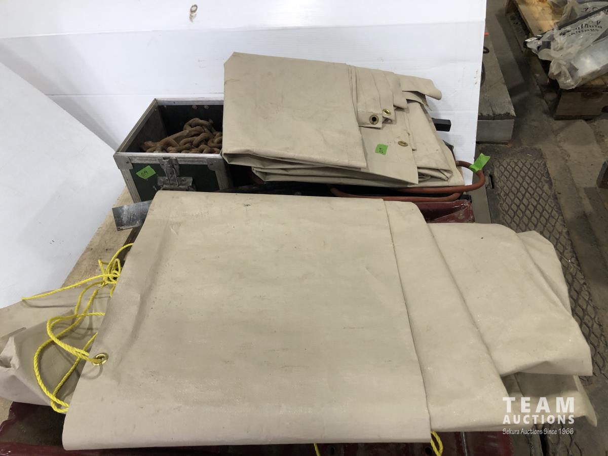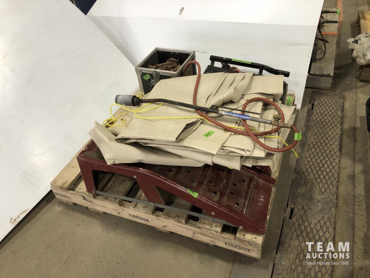 Husky mechanics creeper, propane torch, tarp, length of chain, metal car ramps