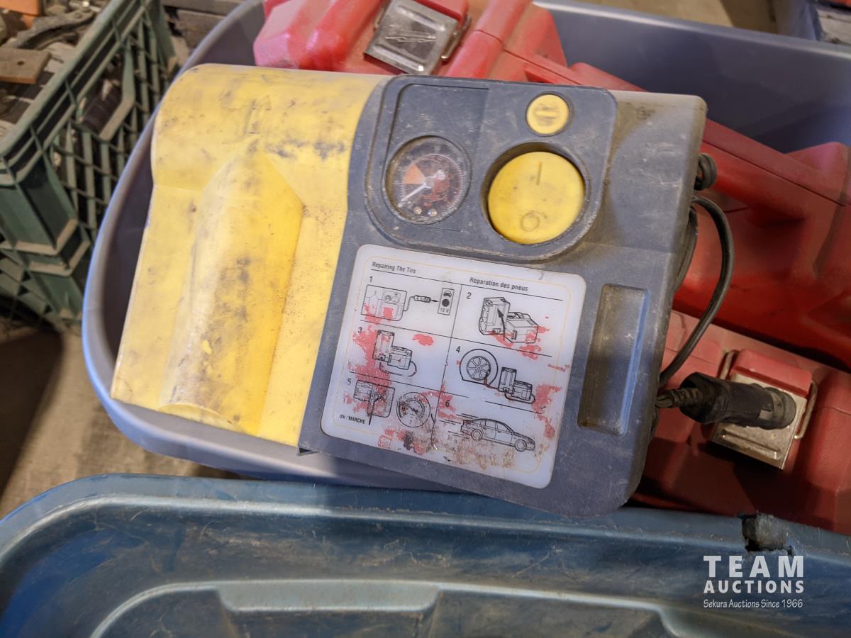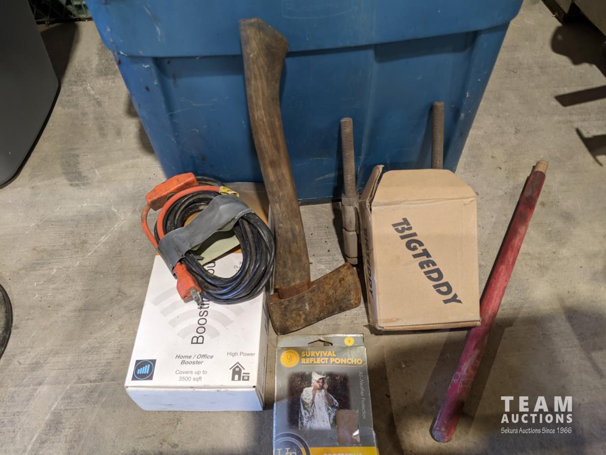 Sawzall, pipe cutter, tire pumps, survival poncho, booster, extension cord, axe