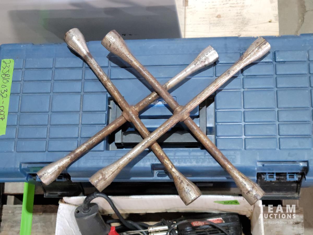 (2) tire irons, angle grinder, drill