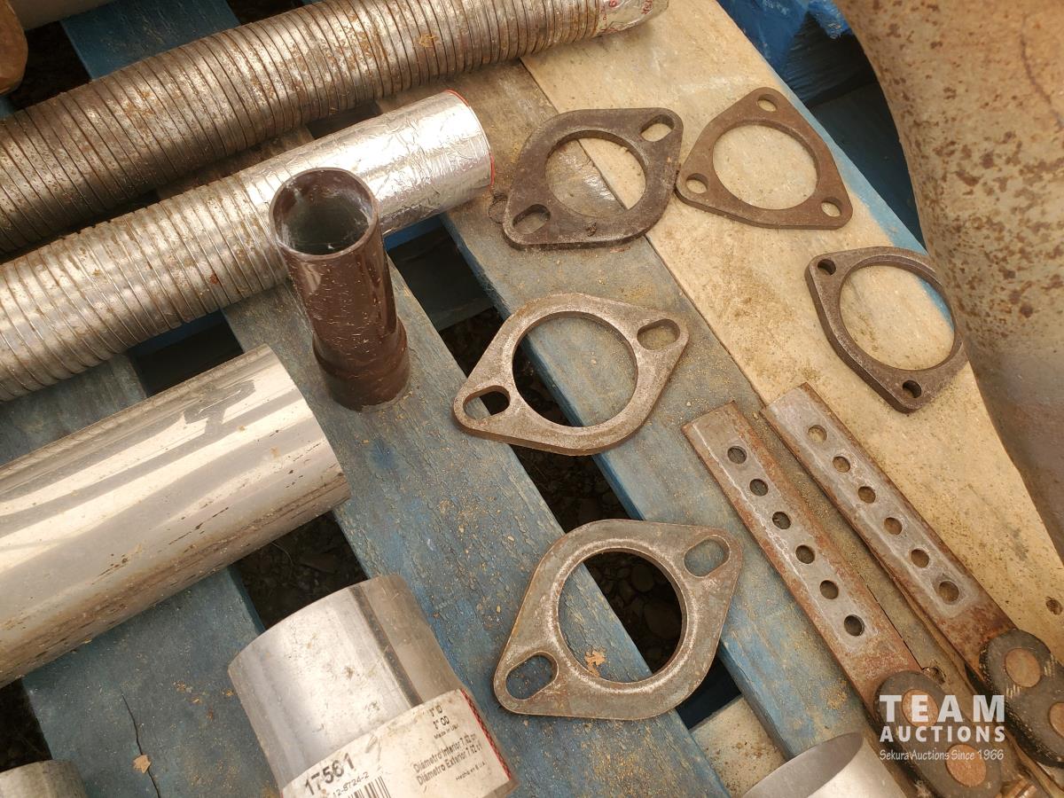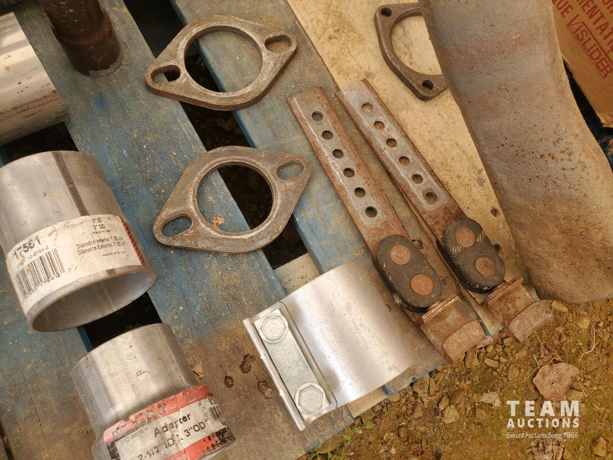 (2) GMC Stainless Muffler & Tailpipe, Exhaust Clamps, Pipe Adapters, Flexible Stainless Pipes, Hangers, '85 GMC Wheel Nut Covers, various wheel nuts