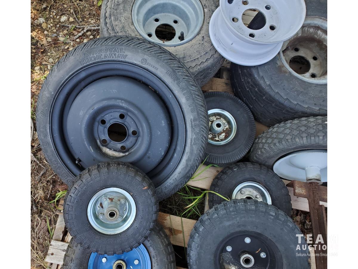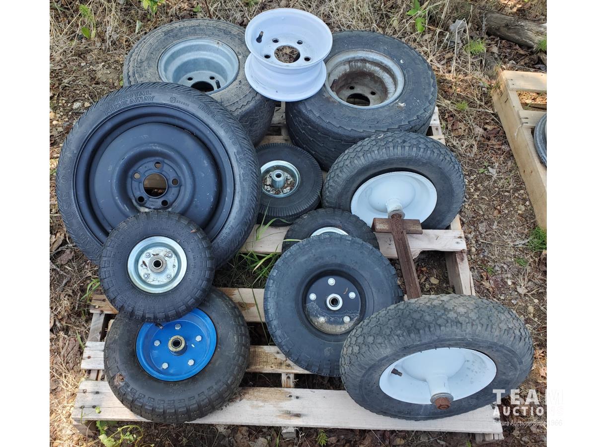 Assortment of Wheelbarrow, Trailer, Dolly, Vehicle Wheels and Rims, Galvanized & Steel