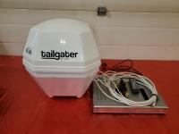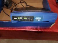 RV Tailgate Satellite Dish & Accessories, Linksys Wireless Broadband Router, Wireless to Telephone Adaptor, Glass and Wood Small Stand, (2) Art Pictures Framed
