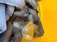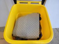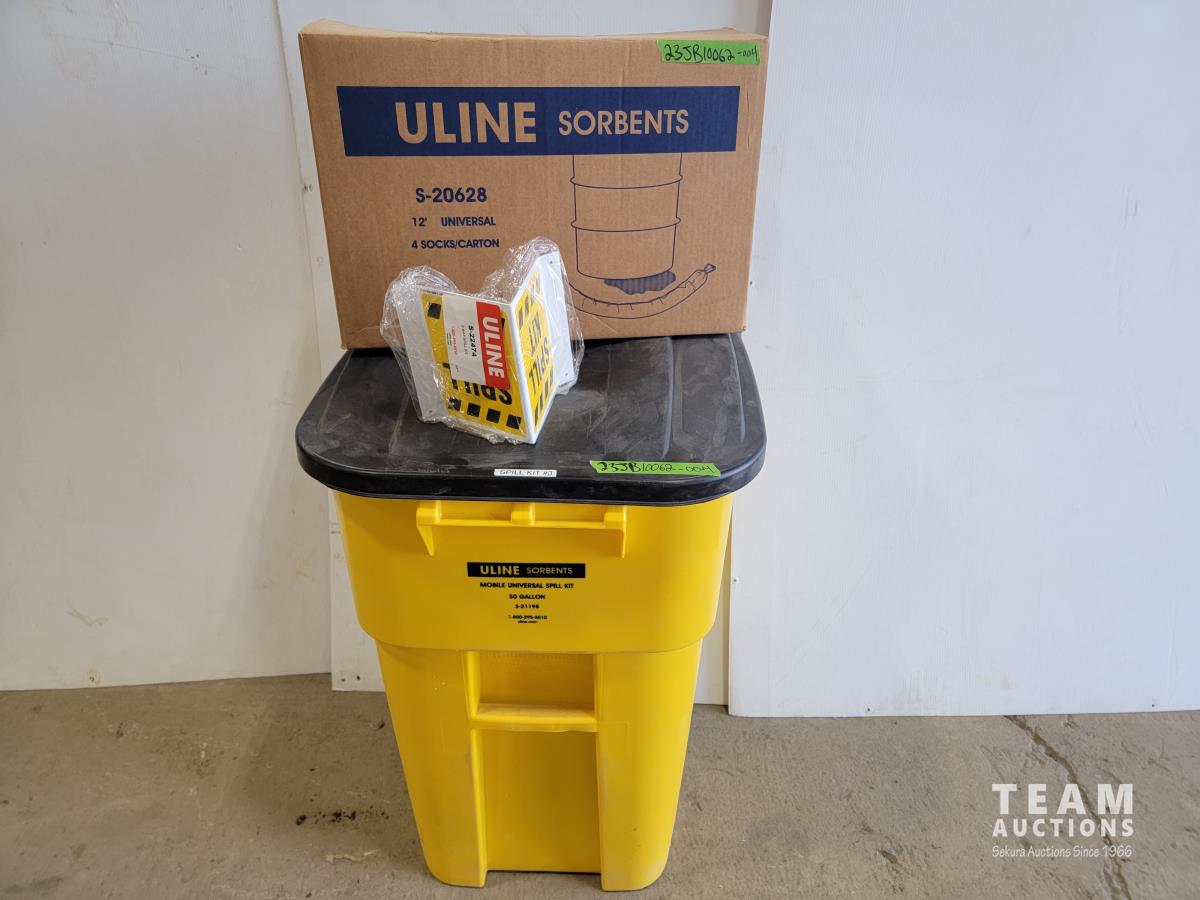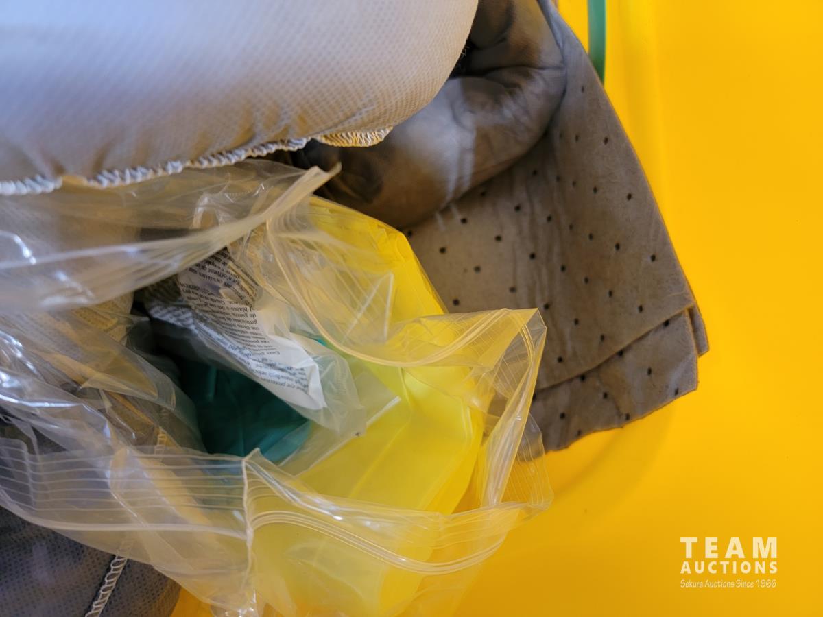 Box of (4) 12 ft Sorbant socks, 30 gallon drum with pads, socks, bags, gloves, coveralls, googles
