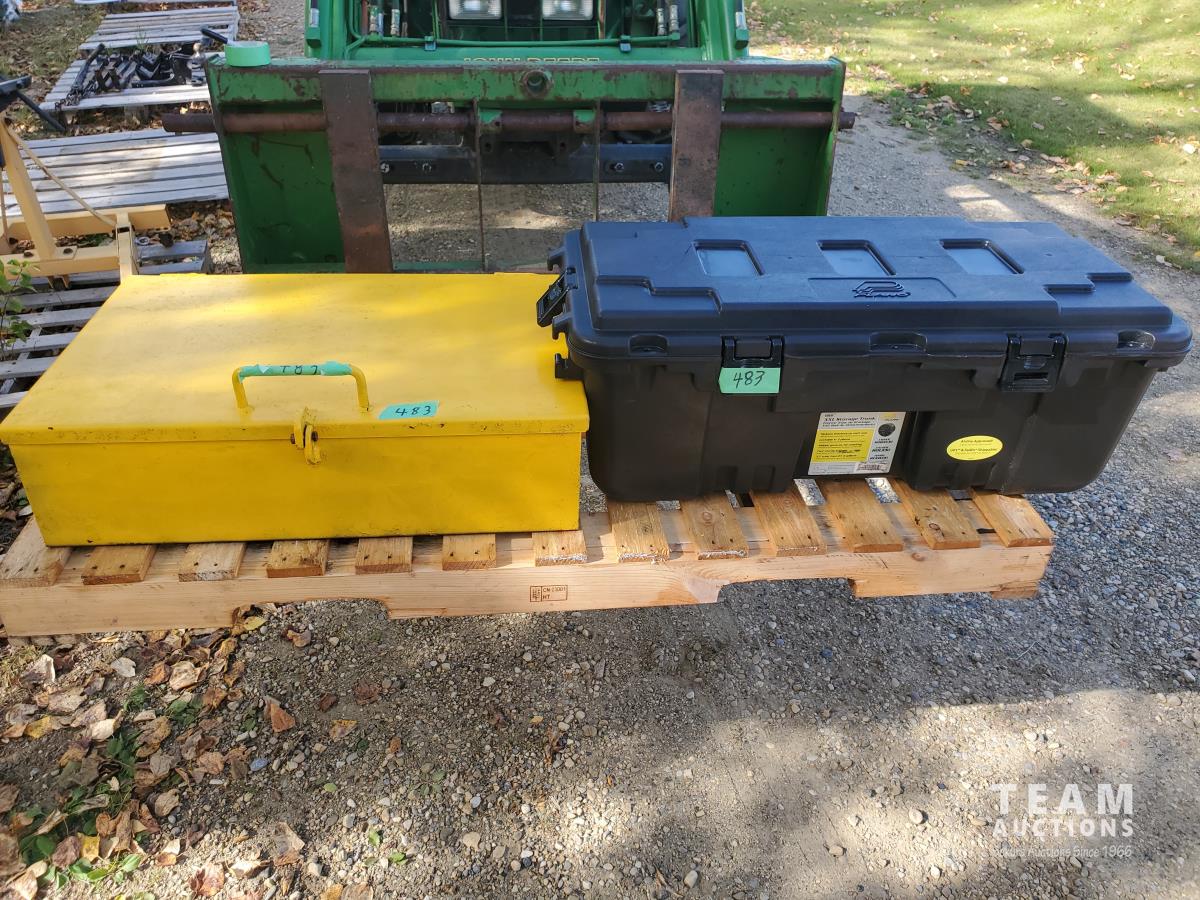 2362 Storage Trunk Plastic Tote and Yellow Heavy Duty Caterpillar Tool Box