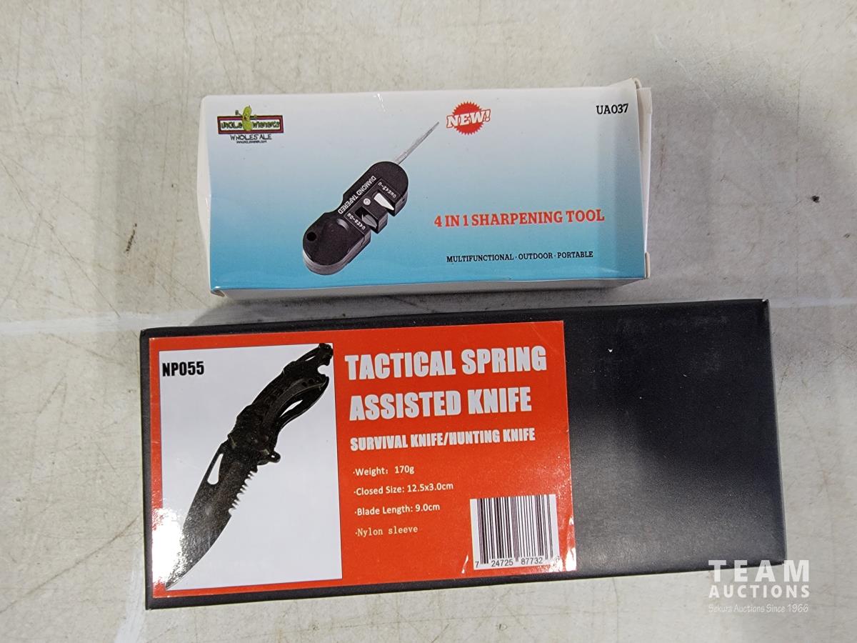 2096 Tactical Spring Assisted Knife and 4-In-1 Sharpening Tool (Unused)