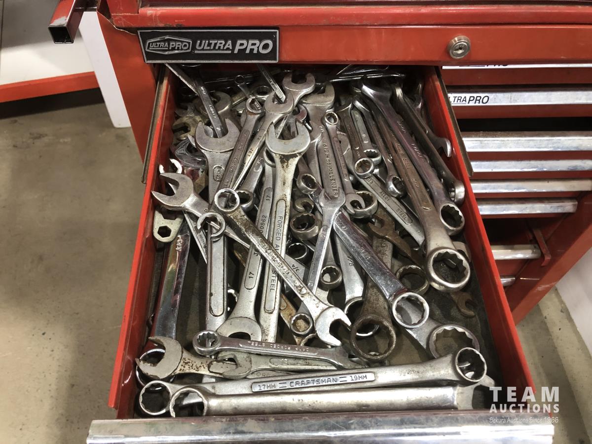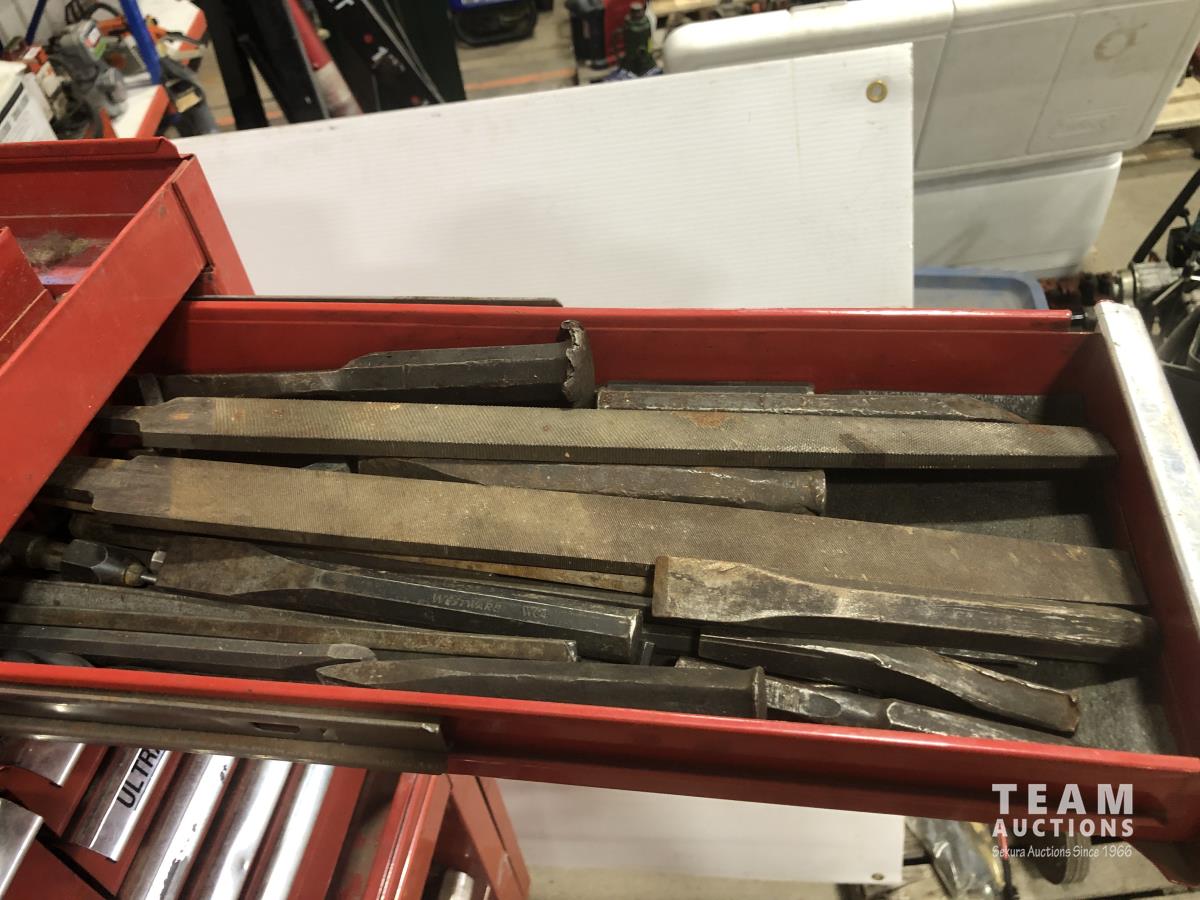 large assortment of tools, 26 inch l x 18 inch d x 62 inch h