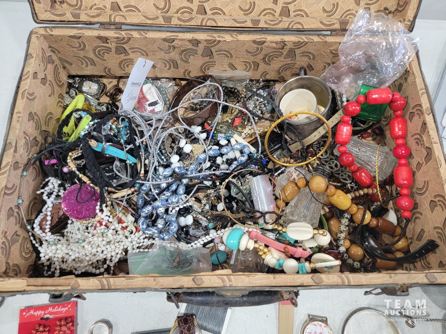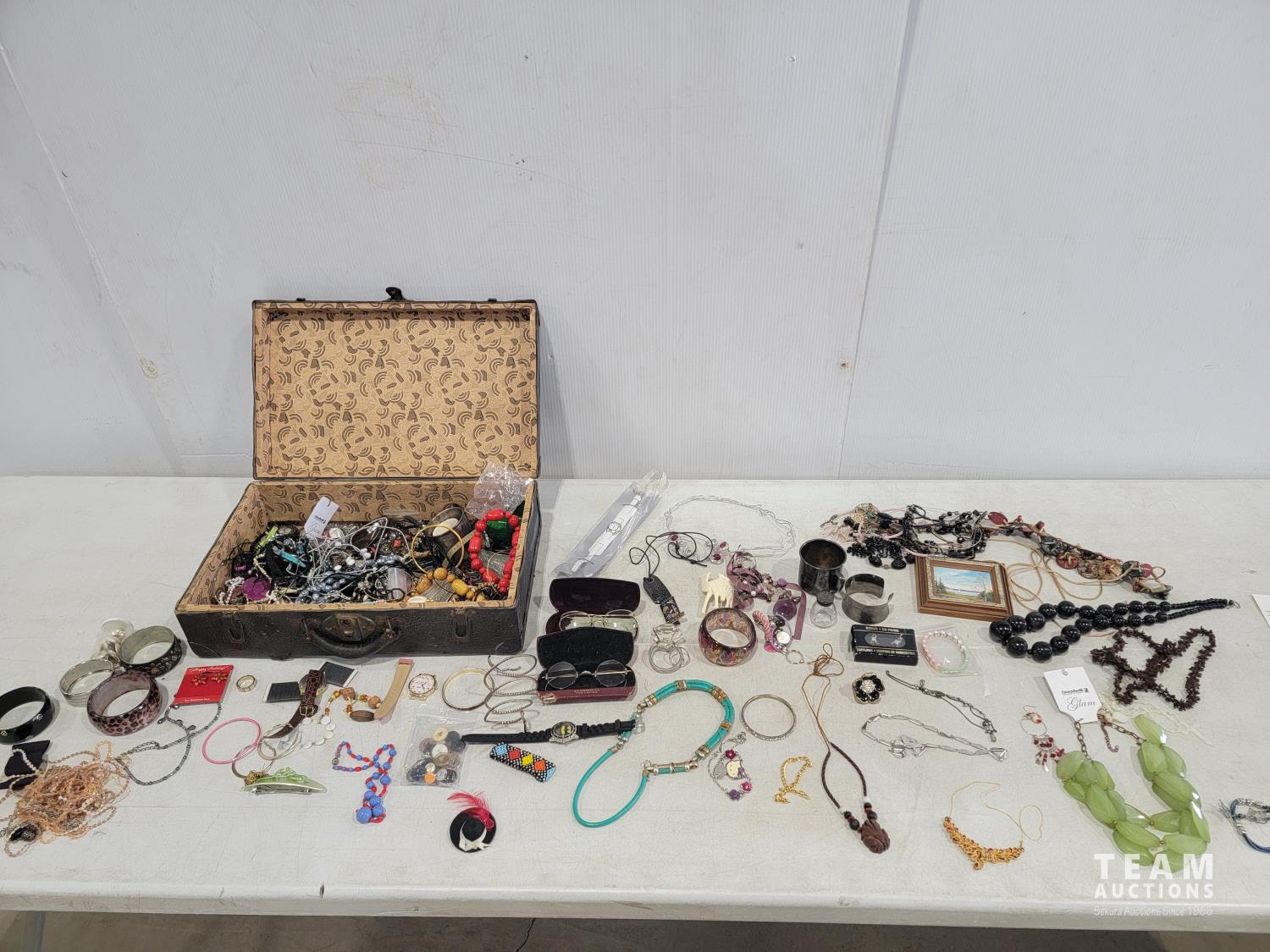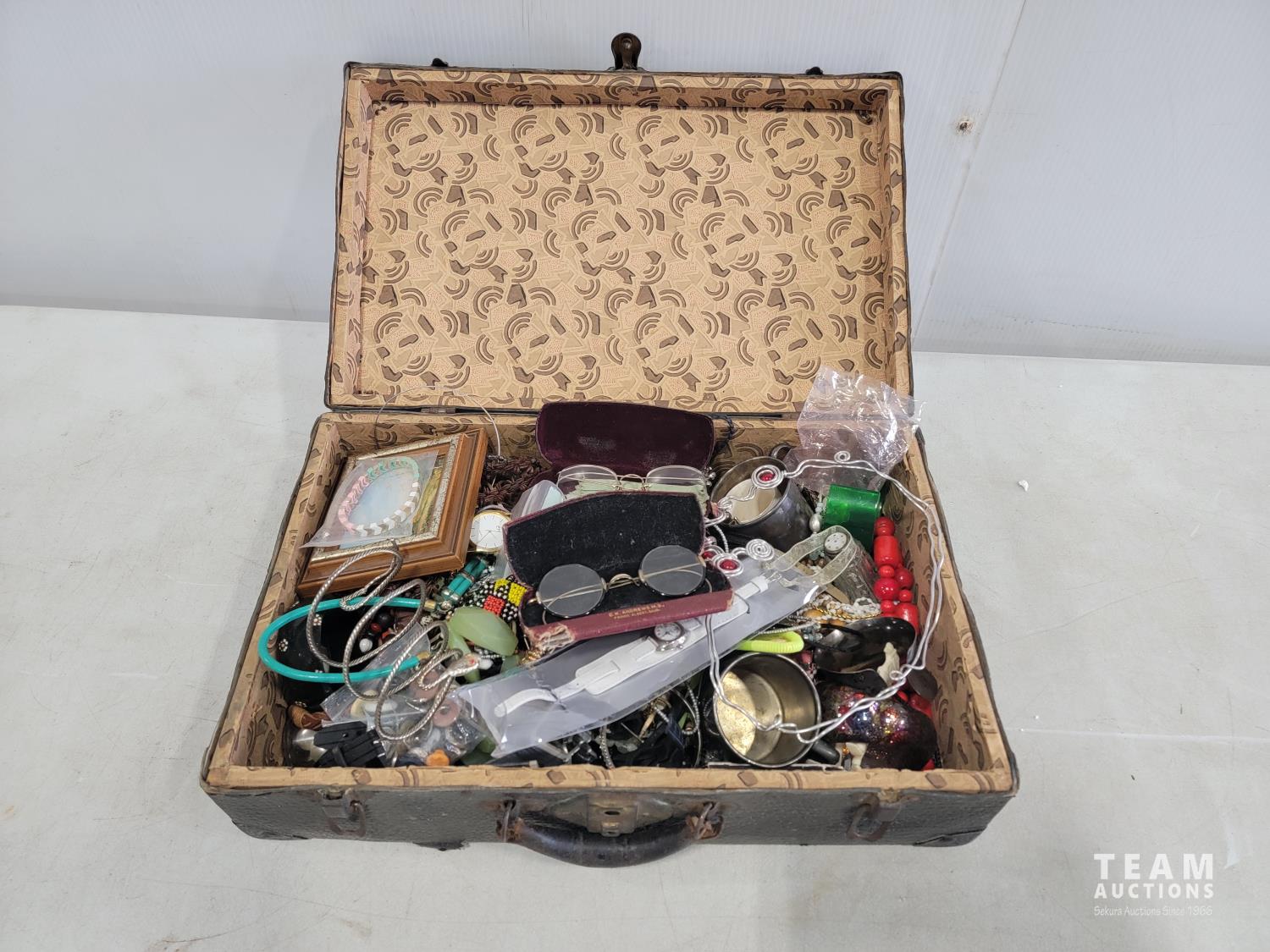 2172 Vintage Suitcase with Various Jewelry and Glasses