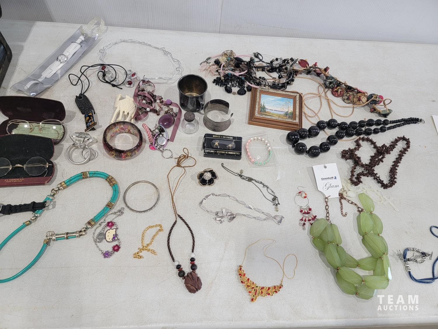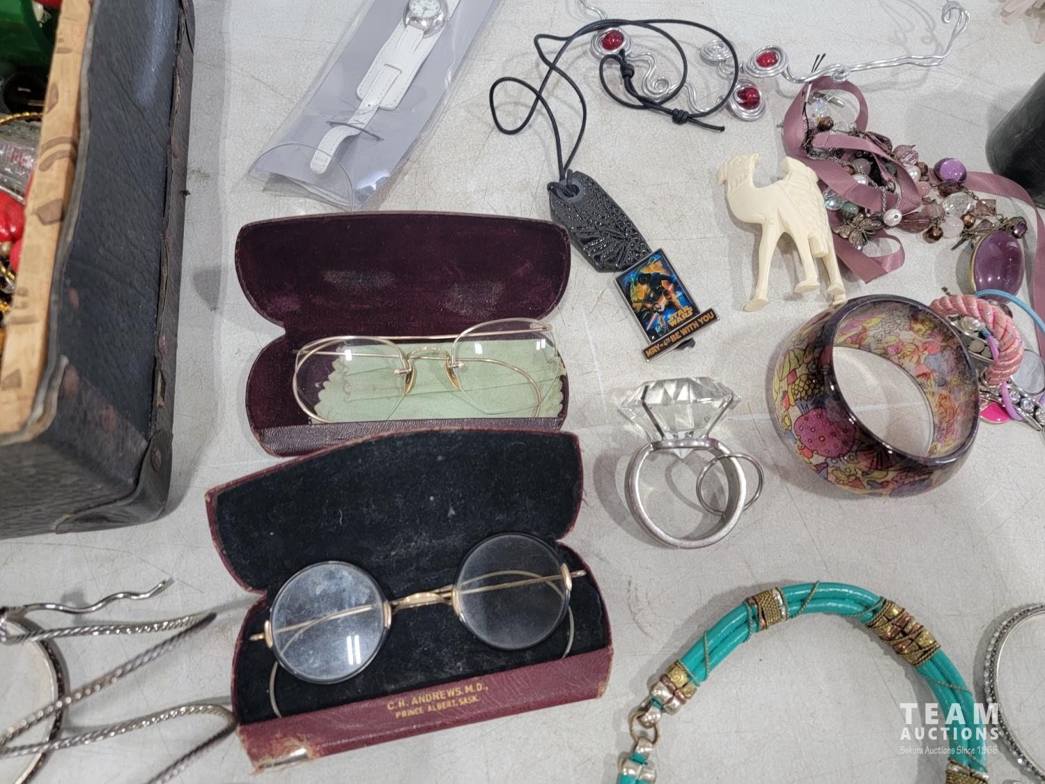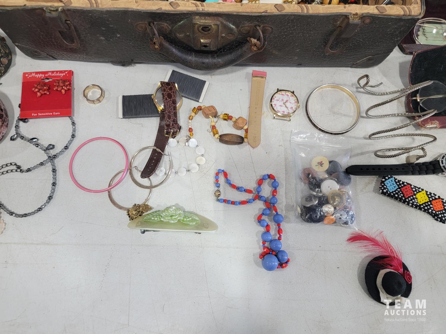 2172 Vintage Suitcase with Various Jewelry and Glasses