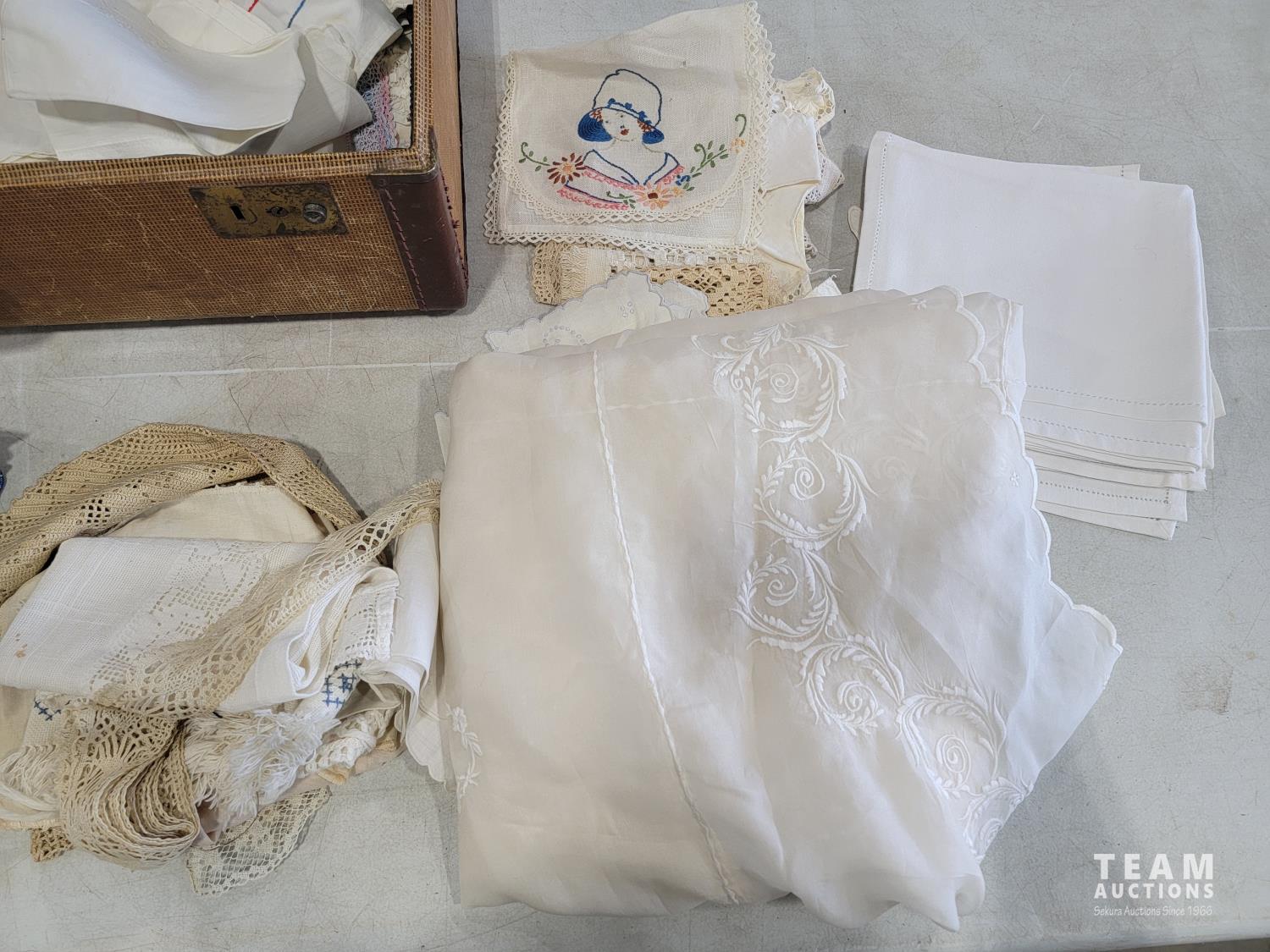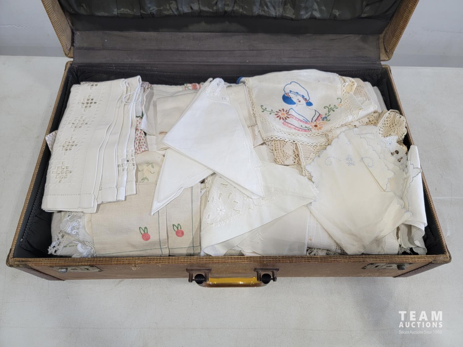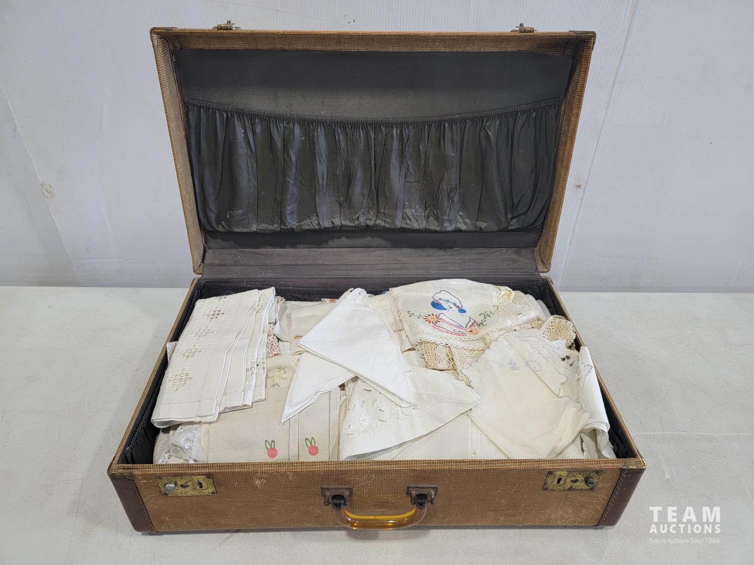 2168 Vintage Suitcase with Various Linens