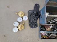 1127 24 Inch Ridgid Pipe Cutter, 24 Inch Pipe Wrench and (2) Regulators