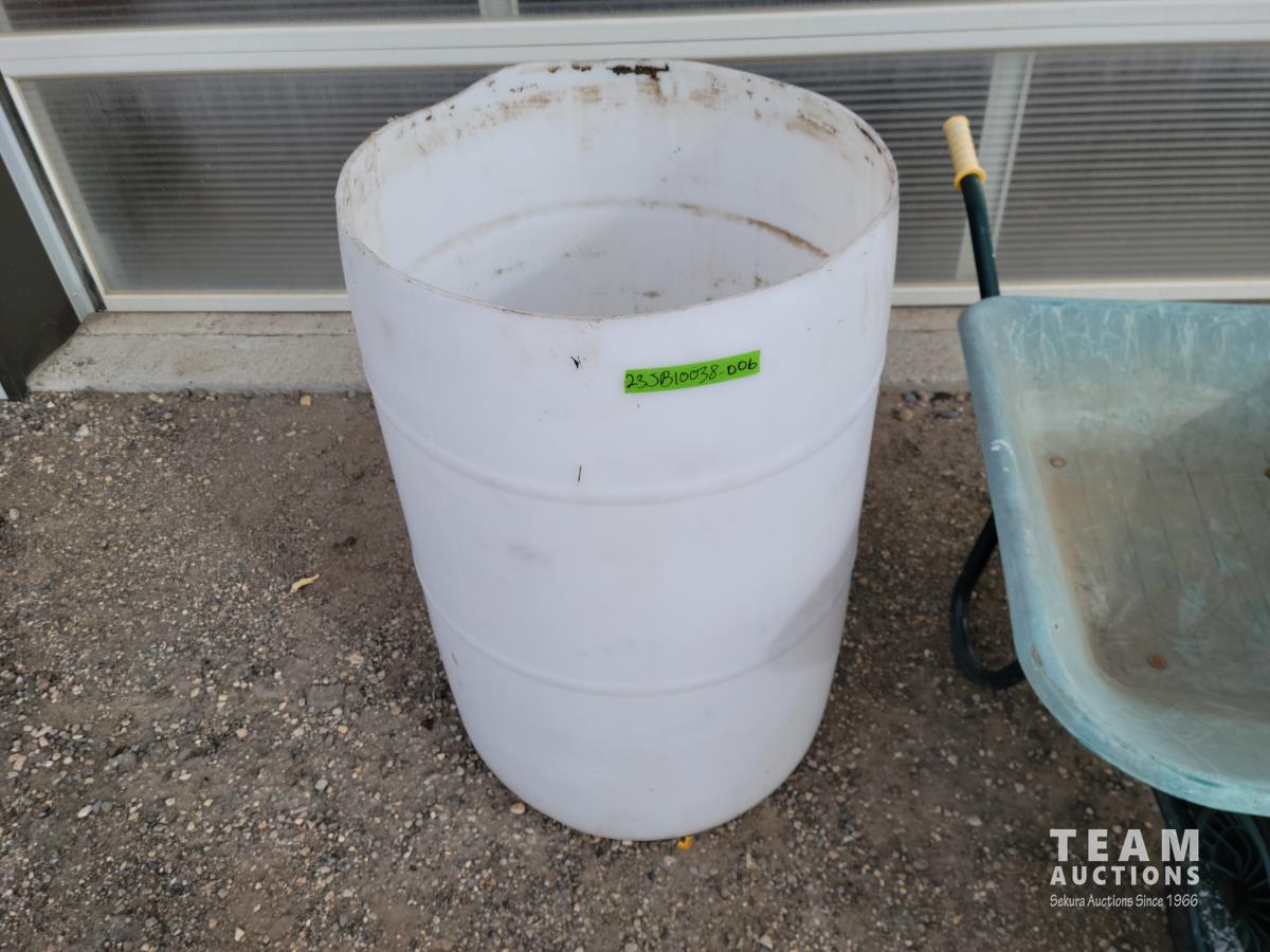 2260 Wheelbarrow and Poly Rain Barrel