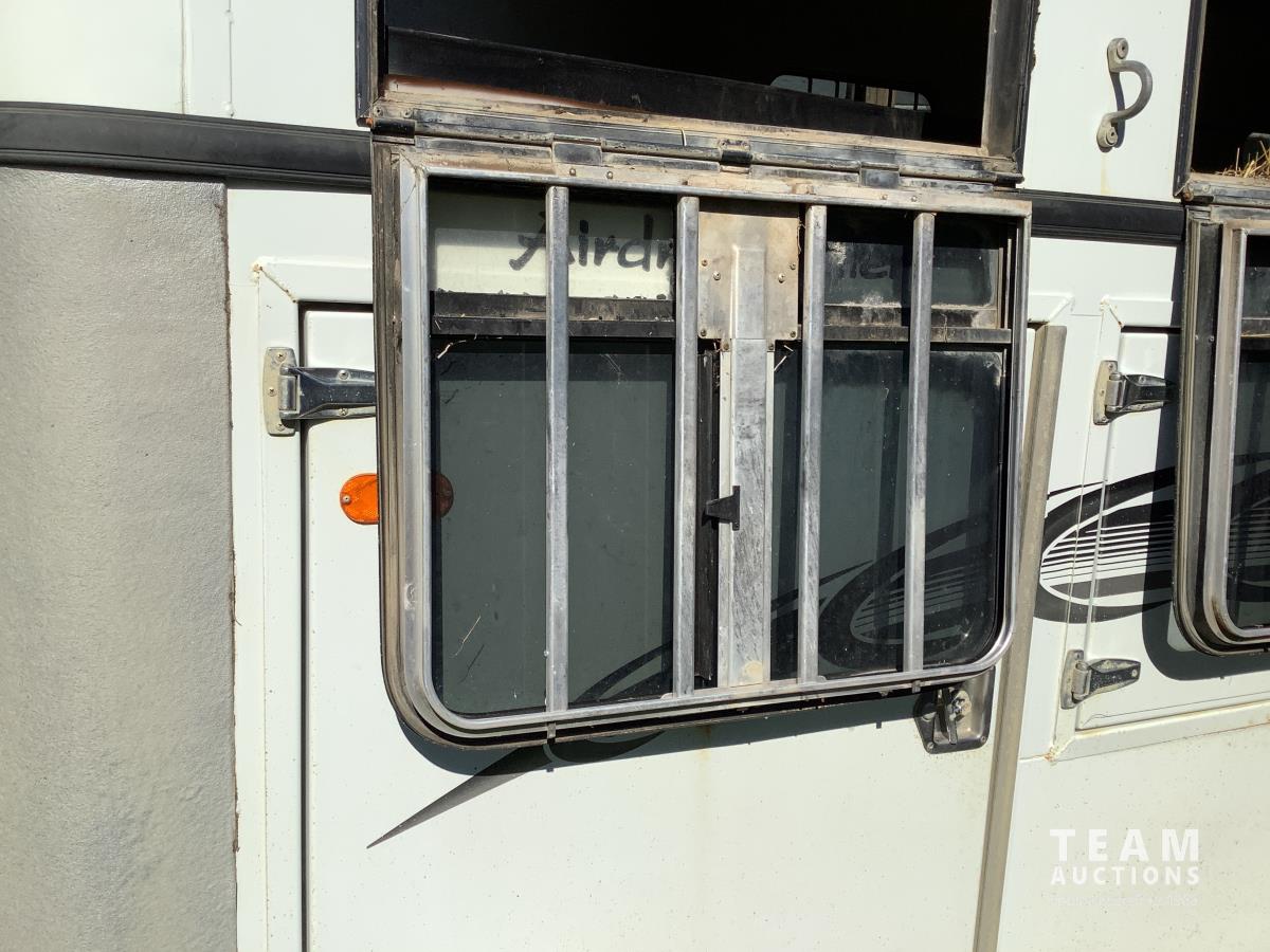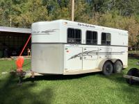 Torque flex axle suspension, 3 horse angle haul, padded dividers, full walk-in front tack room, swing out stands, 30 gallon water tank, rear tack storage, under windows, electric hitch jack with new battery, 2-5/16 ball hitch, equalizer hitch sells with the unit, spare tire on rim, tire wrench, 235/85 R16 tires