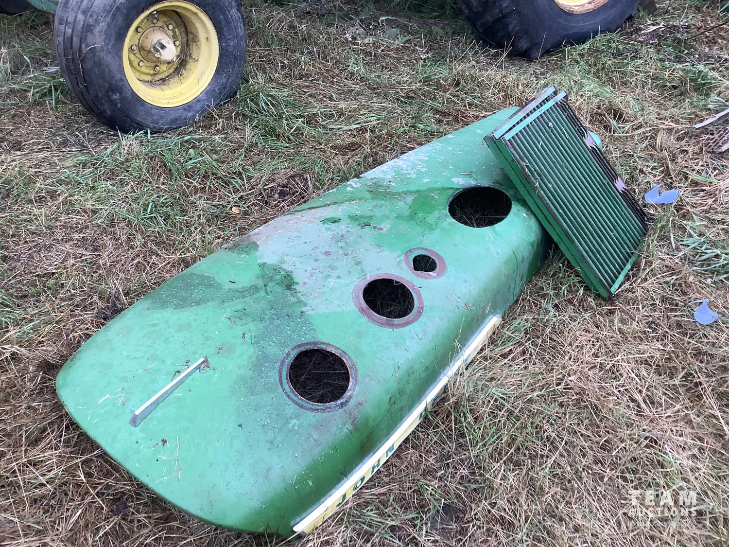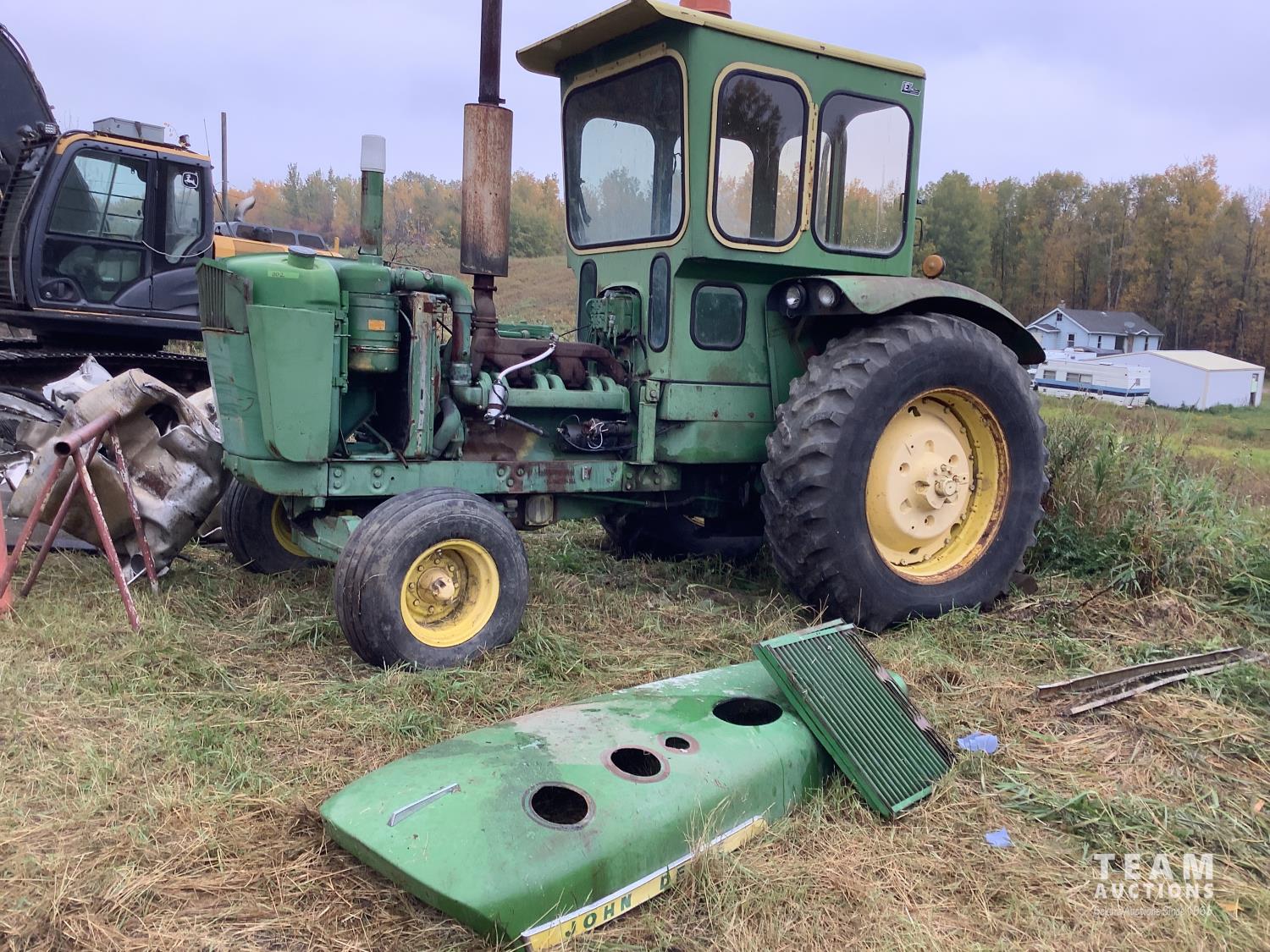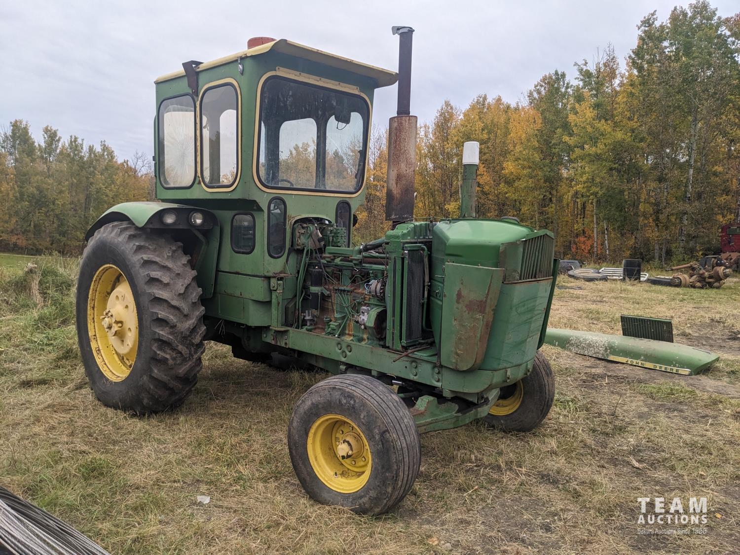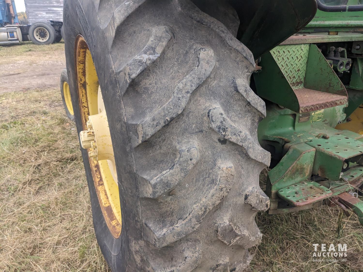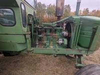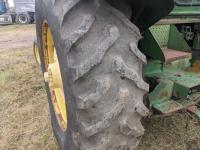 John Deere 8.7 L 6 cylinder diesel engine, 8 speed manual transmission, cab, 1000 PTO, 2 rear hydraulic outlets, 12.5-16 front tires, 18.4-38 rear tires