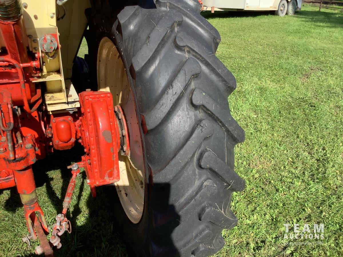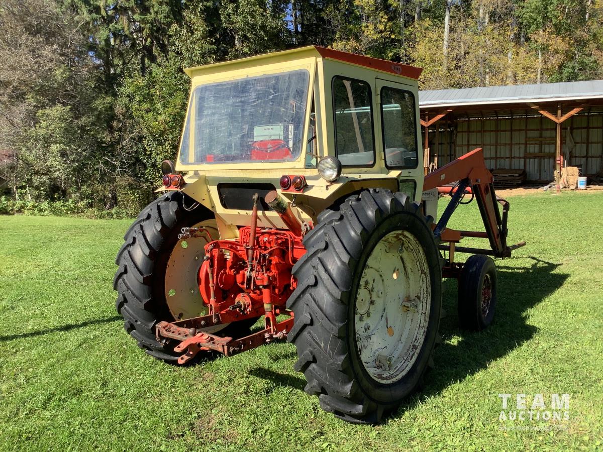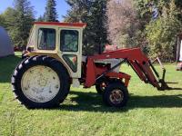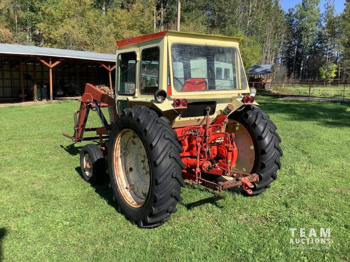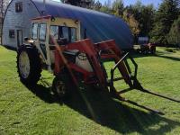 Loader, bucket, bale forks, 4 cylinder engine, cab, 540 PTO, 3 point hitch, 15.5X38 rear tires, manuals, wrenches