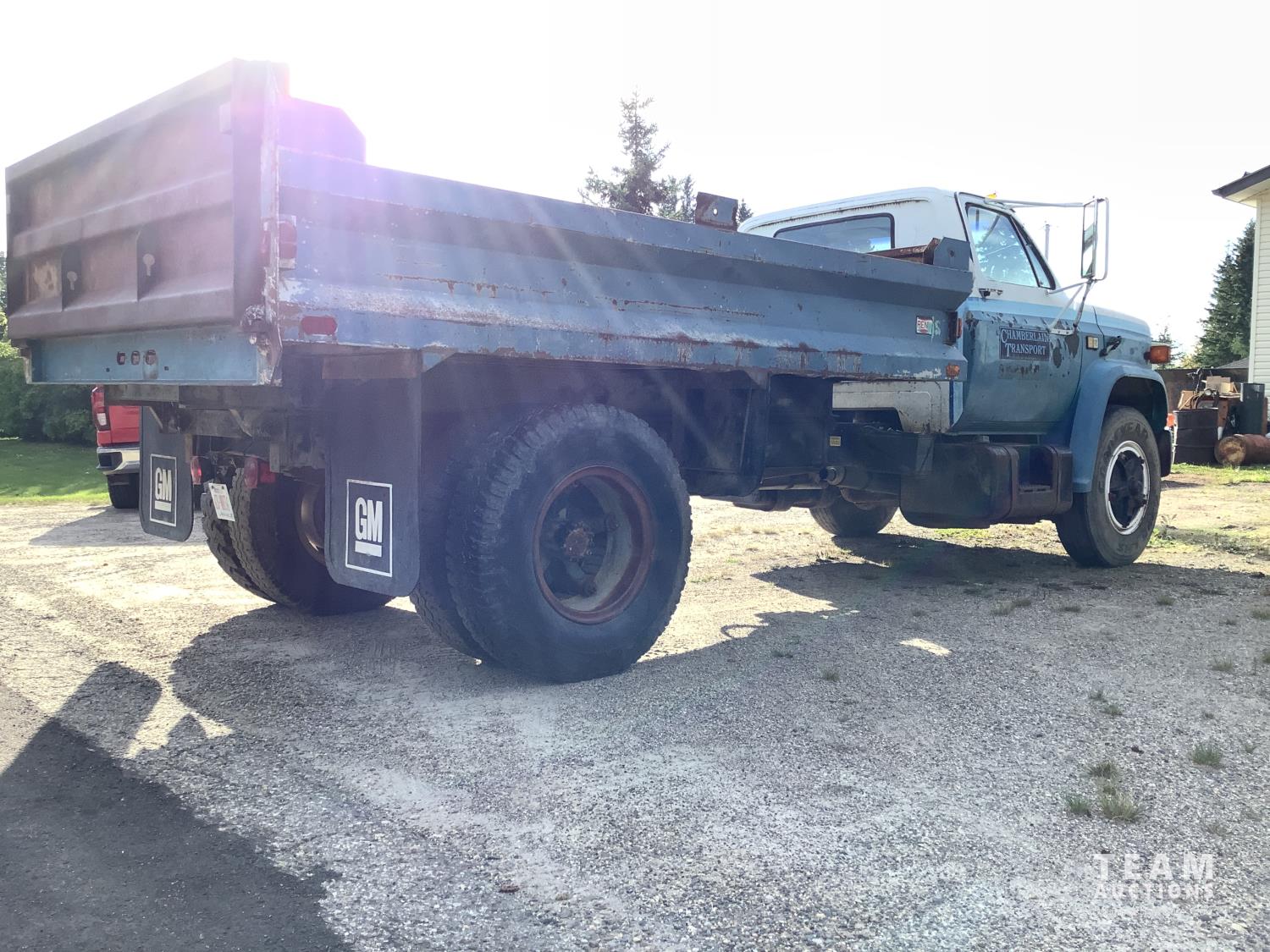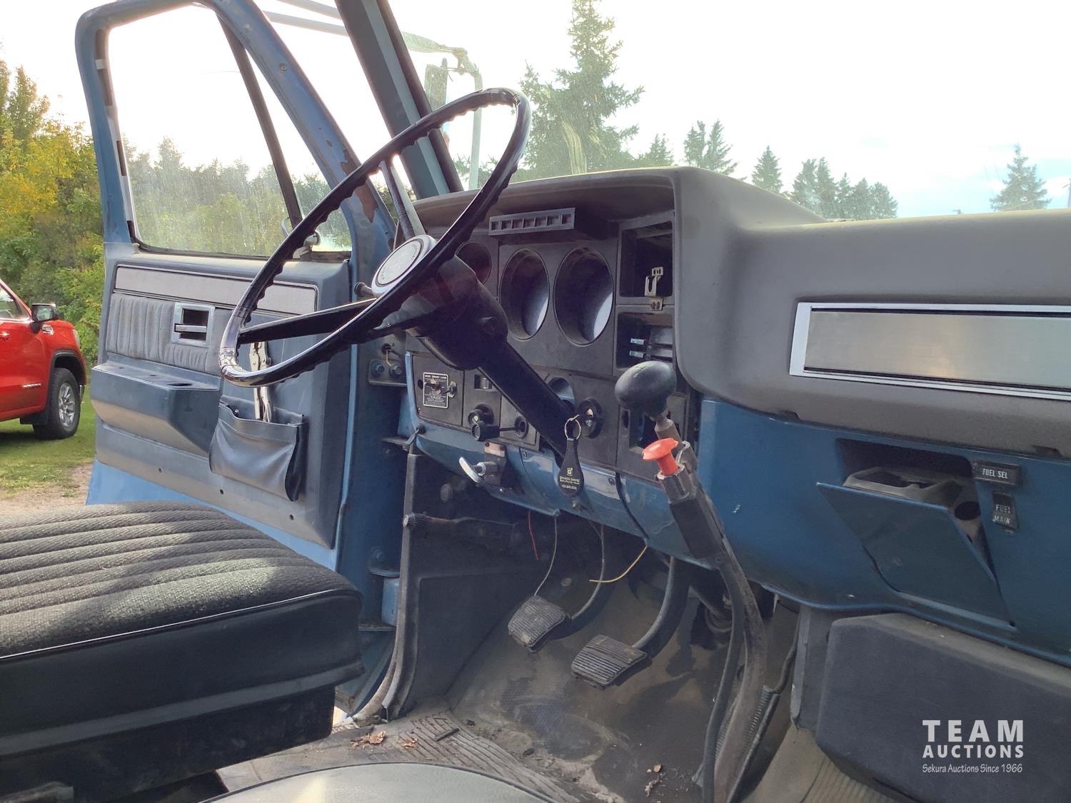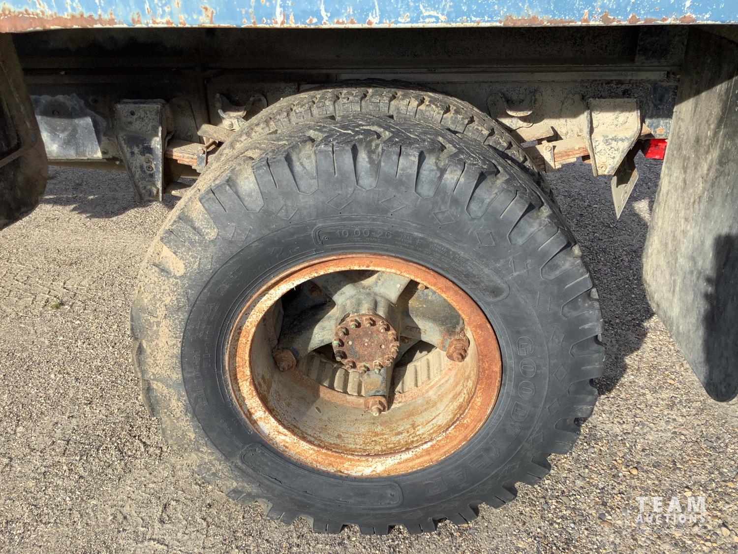366 V8 gas engine, 5x2 10 speed manual transmission, Renn 12 ft steel box, twin cylinder hoist, hydraulic brakes, 10.00x20 rear tires