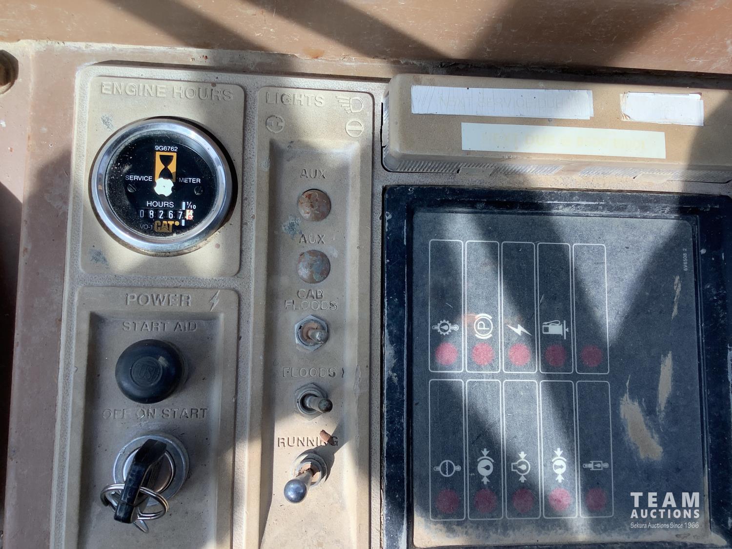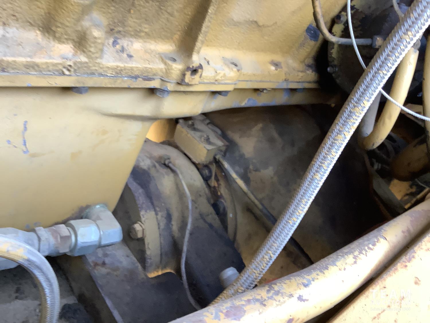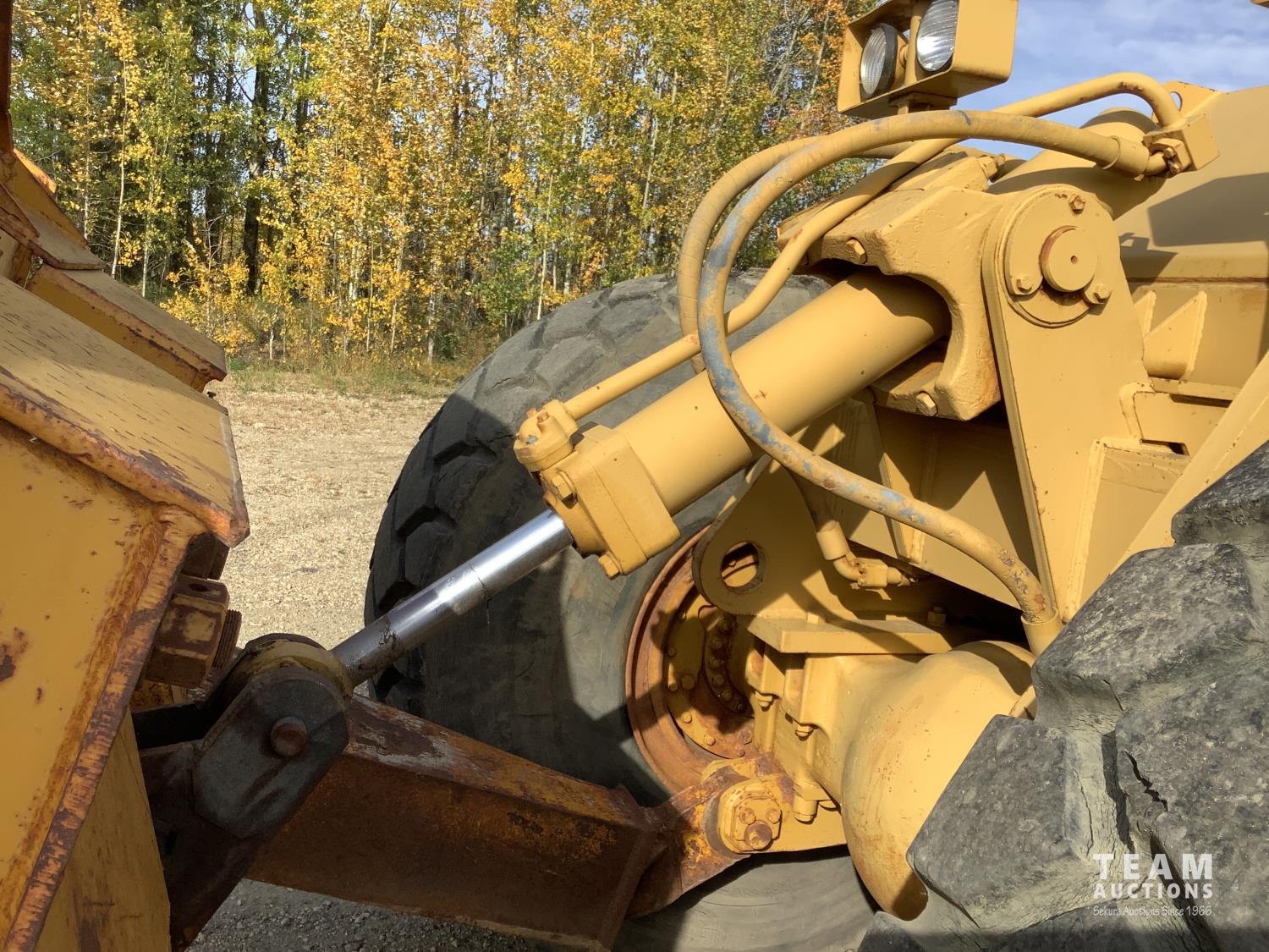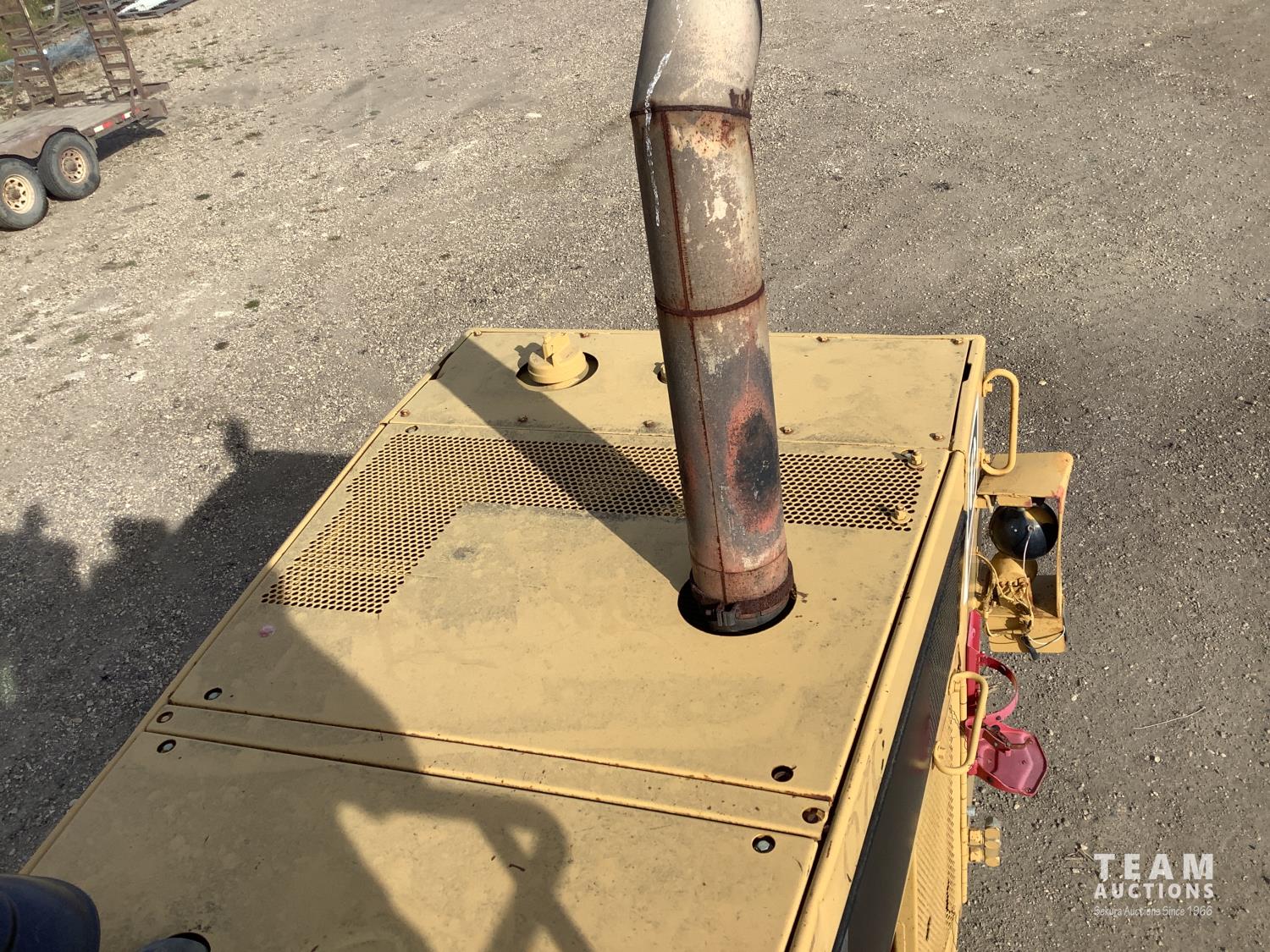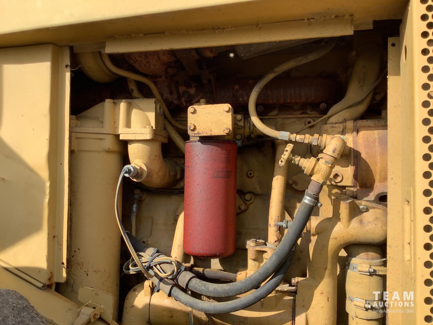 3406 caterpillar 14.6 Liter engine, 4 speed single lever power shift transmission, hydraulic 10 ft blade with rubber cushion blocks, cab, factory ROPS protection, rear tow hitch, 4 wheel oil- immersed multiple disc brakes, master switch, good batteries, 29.5X25 tires