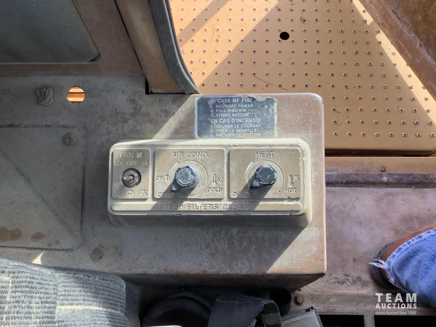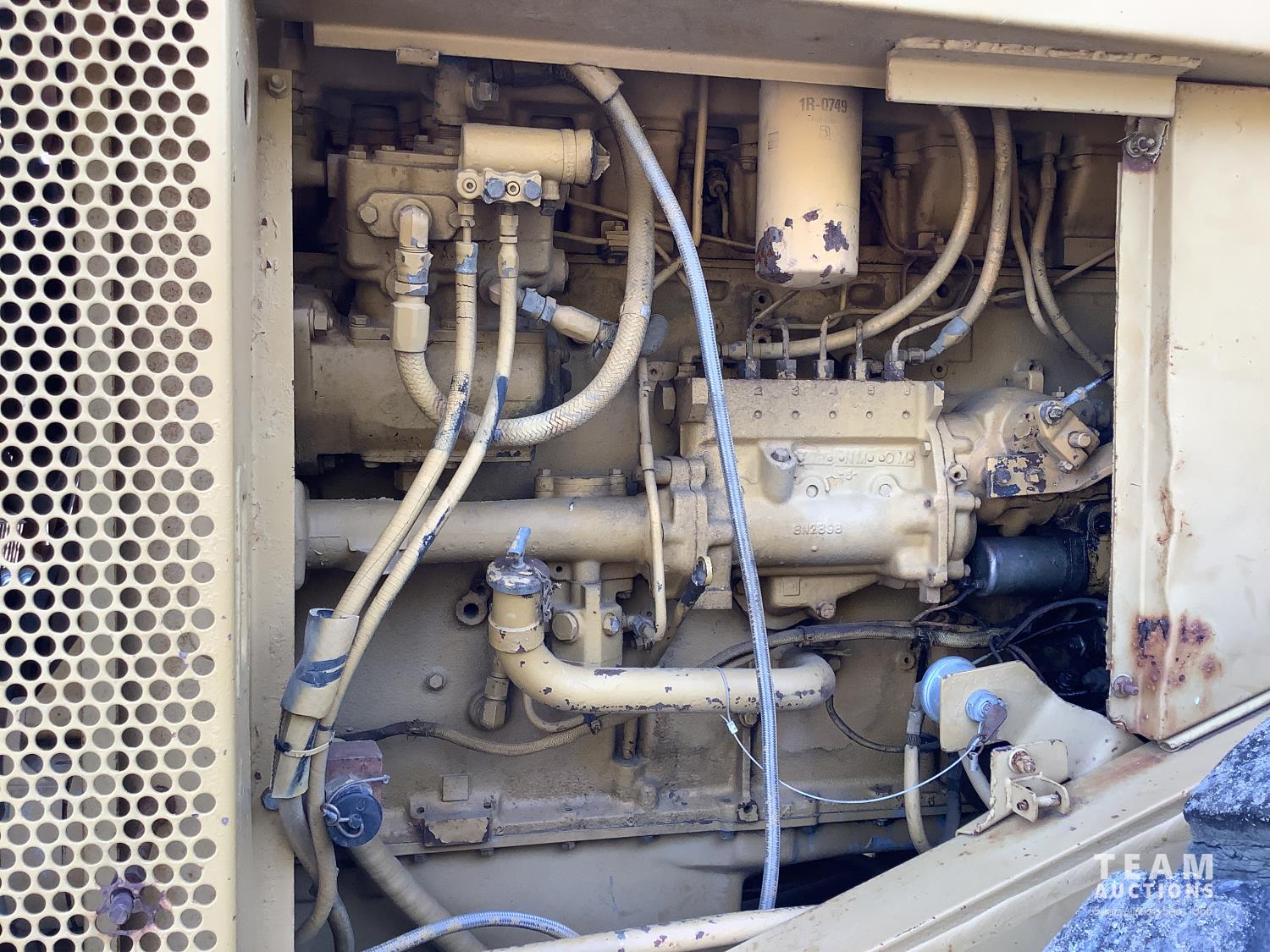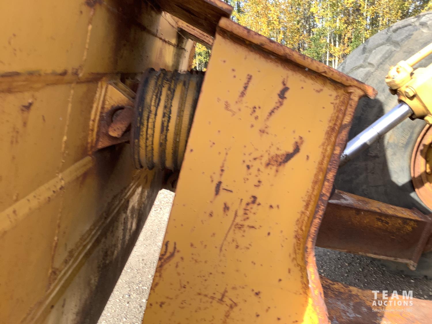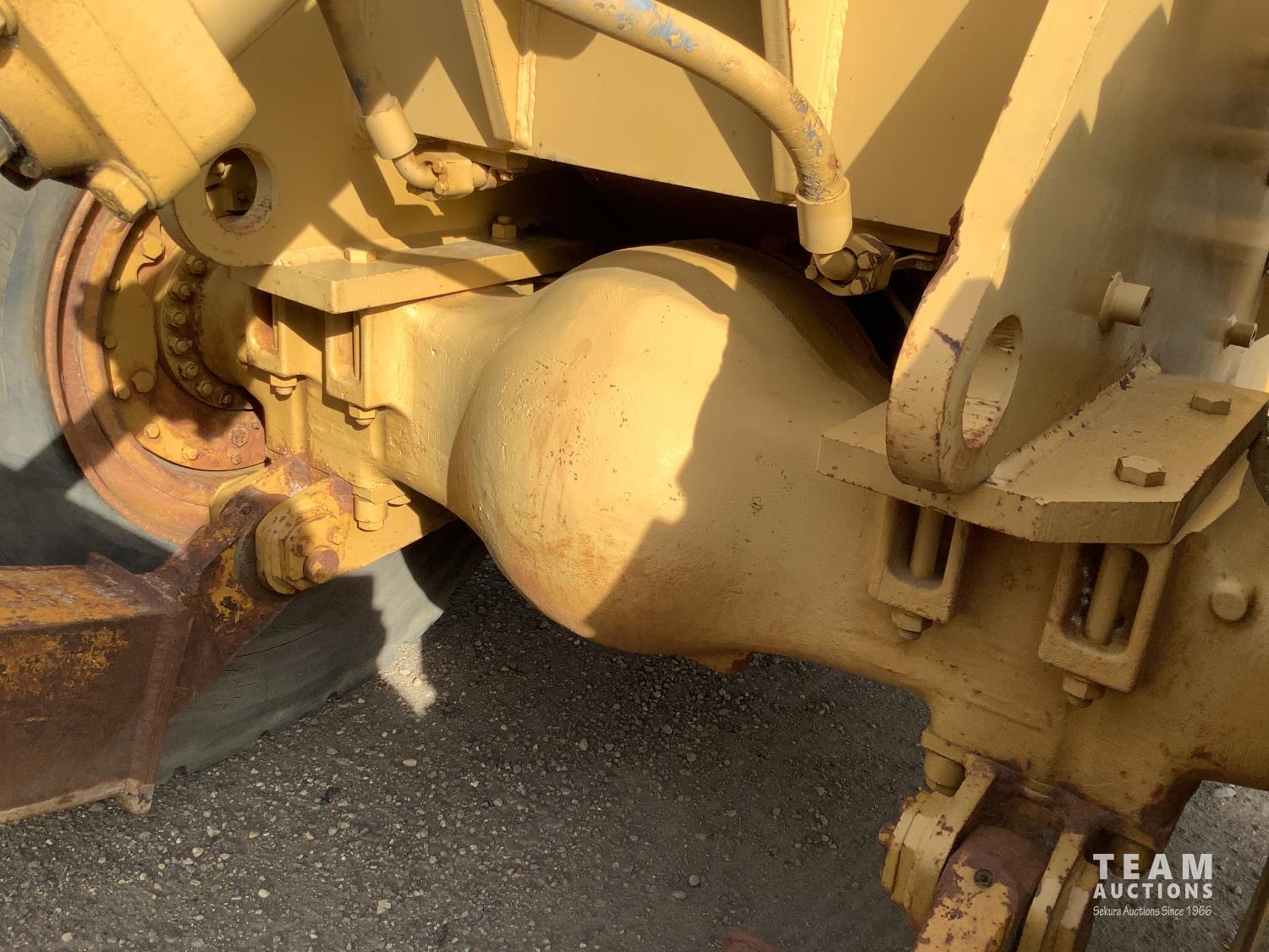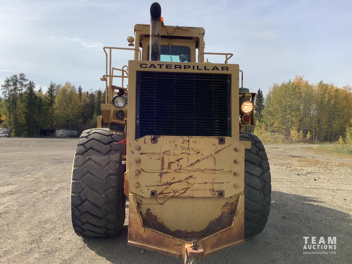 3406 caterpillar 14.6 Liter engine, 4 speed single lever power shift transmission, hydraulic 10 ft blade with rubber cushion blocks, cab, factory ROPS protection, rear tow hitch, 4 wheel oil- immersed multiple disc brakes, master switch, good batteries, 29.5X25 tires