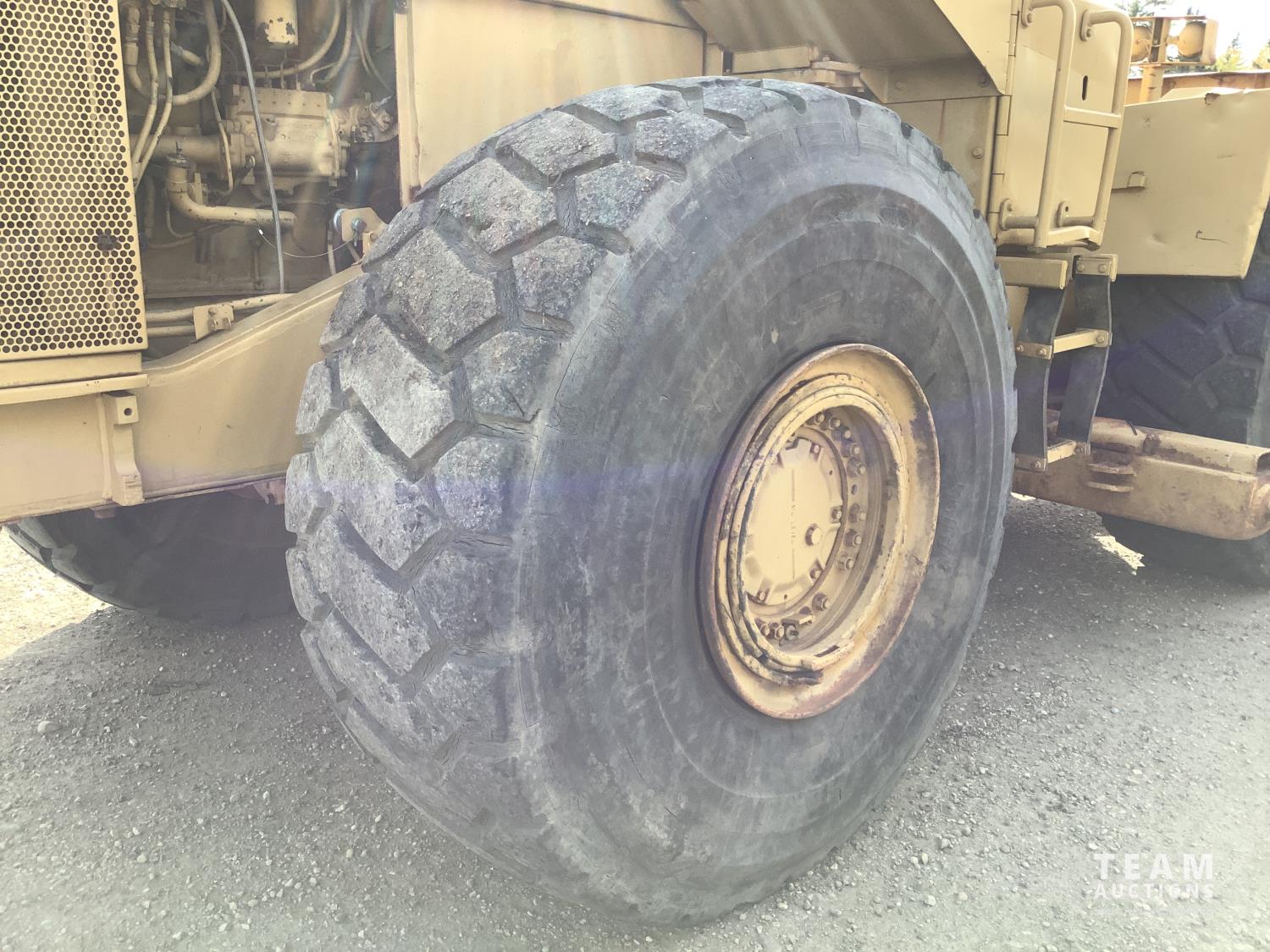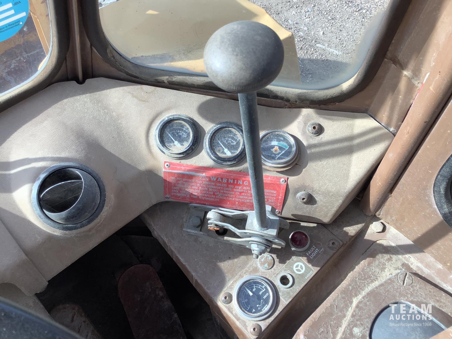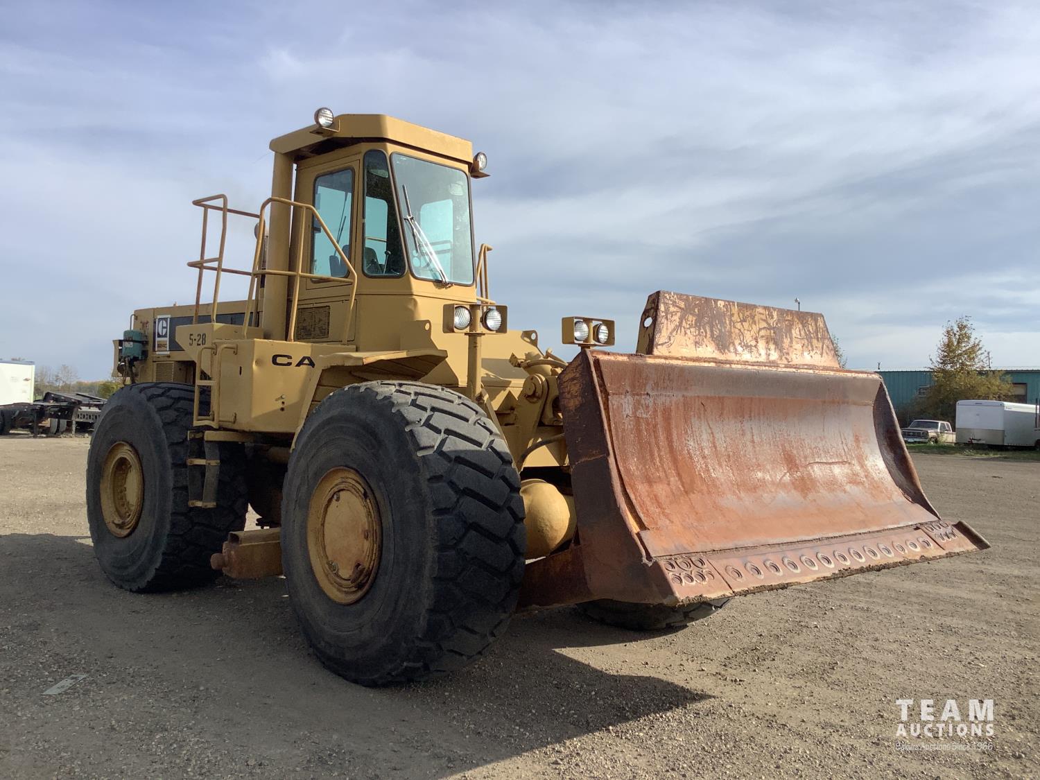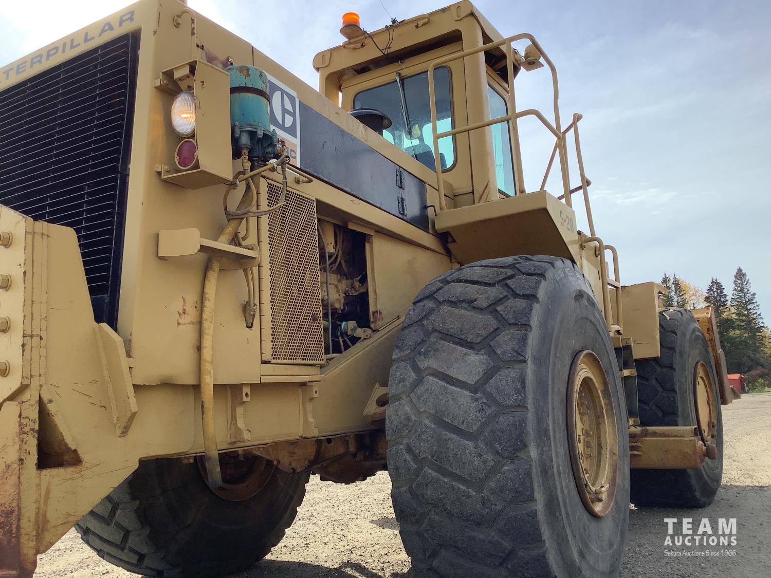 3406 caterpillar 14.6 Liter engine, 4 speed single lever power shift transmission, hydraulic 10 ft blade with rubber cushion blocks, cab, factory ROPS protection, rear tow hitch, 4 wheel oil- immersed multiple disc brakes, master switch, good batteries, 29.5X25 tires