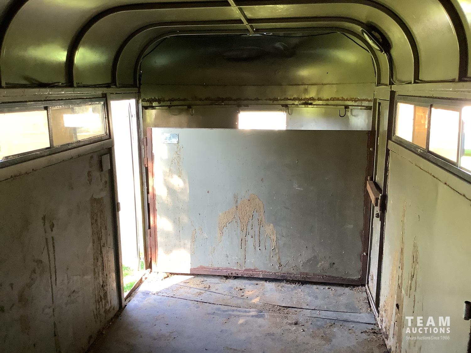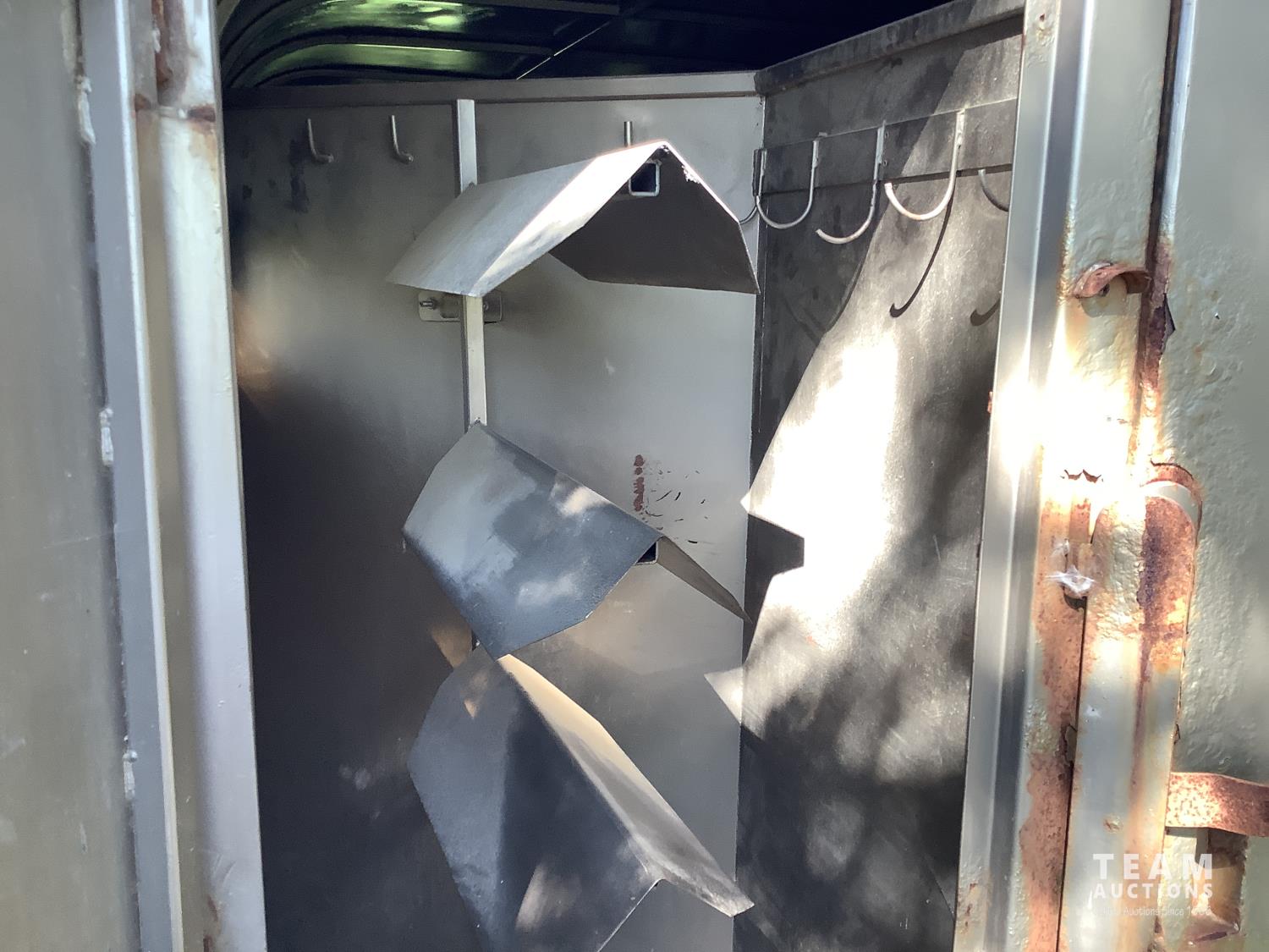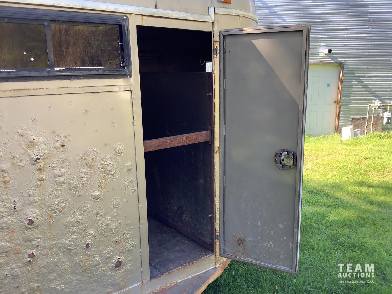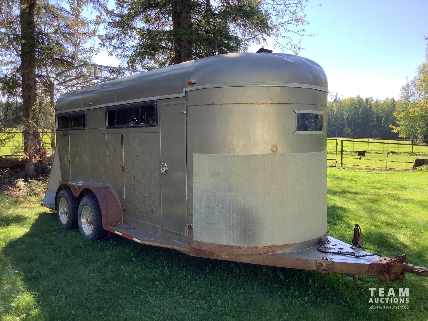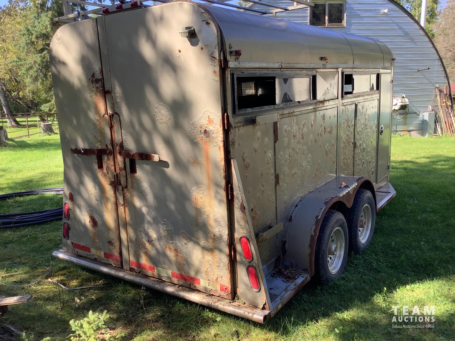 (2) side doors, rear tack storage area, rubber mat flooring, roof rack, 2-5/16 ball hitch, 3000 lb axles, sliding side windows, LT215/75R15 tires on aluminum rims