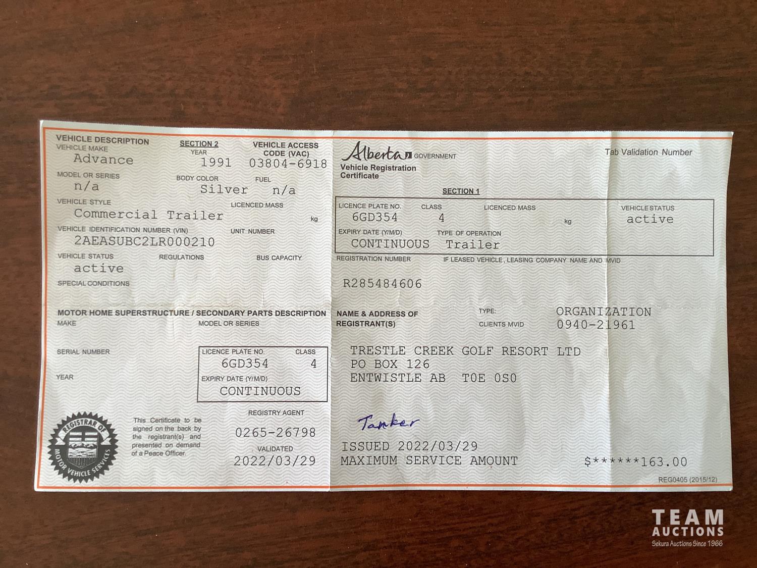290 1991 Advance T/A 28185 Liter Tank Trailer