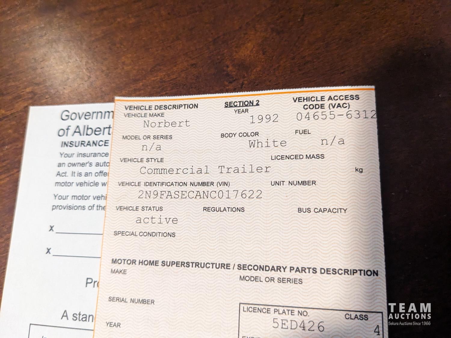 Serial number on trailer is not legible.