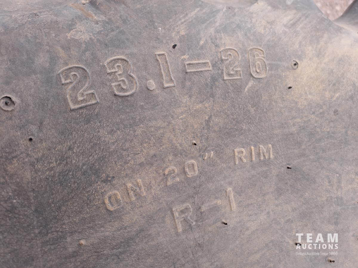 Tubeless, 12 ply, 23.1-26 for 20 inch rims R-1, 23 deg tread bars for increased traction