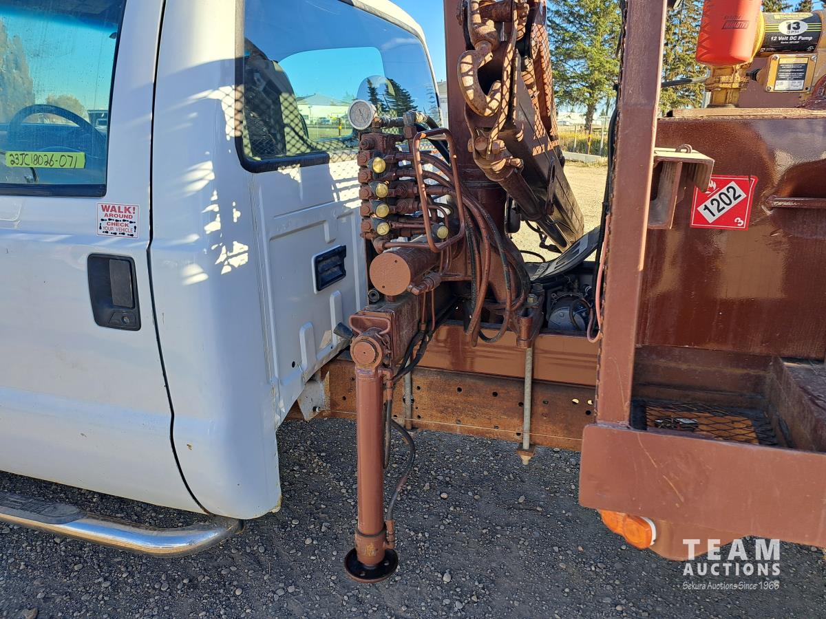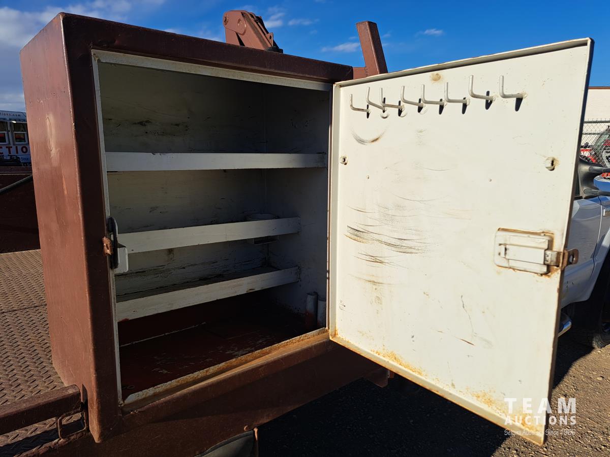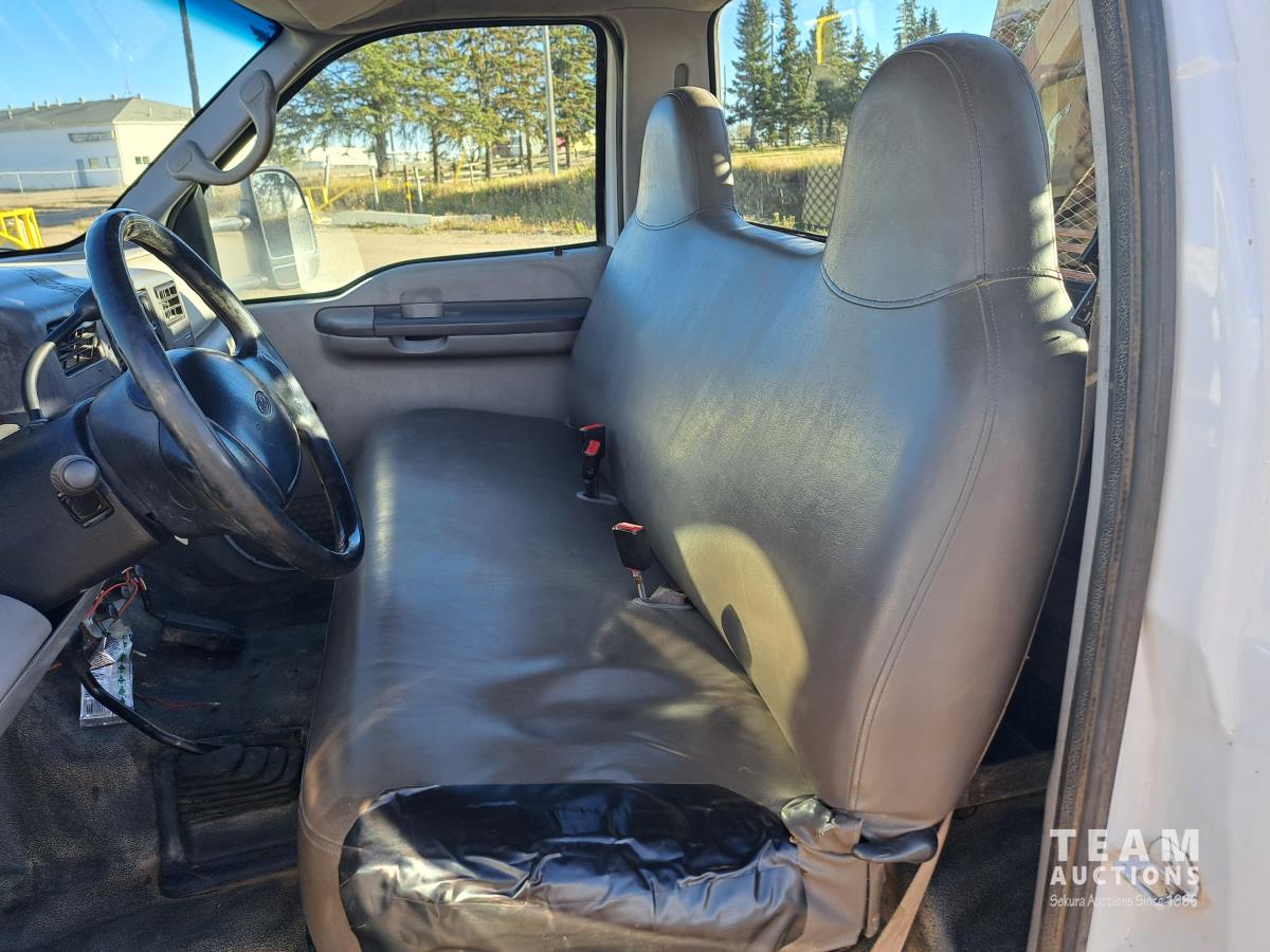 Ford TRITON 6.8 V10 310 HP gas engine, electric engine block heater, automatic transmission, A/C, cruise control, radio, hydraulic wet kit, steel tool boxes, chain holders, FASSI F20 21 knuckle crane, outriggers, spring suspension, 225/70R19.5 front tires, 225/70R19.5 rear tires