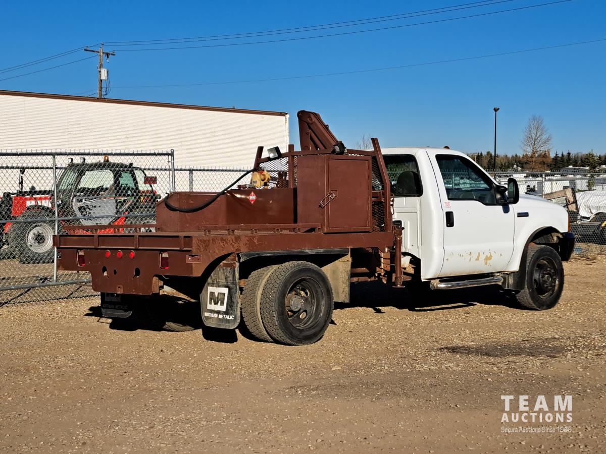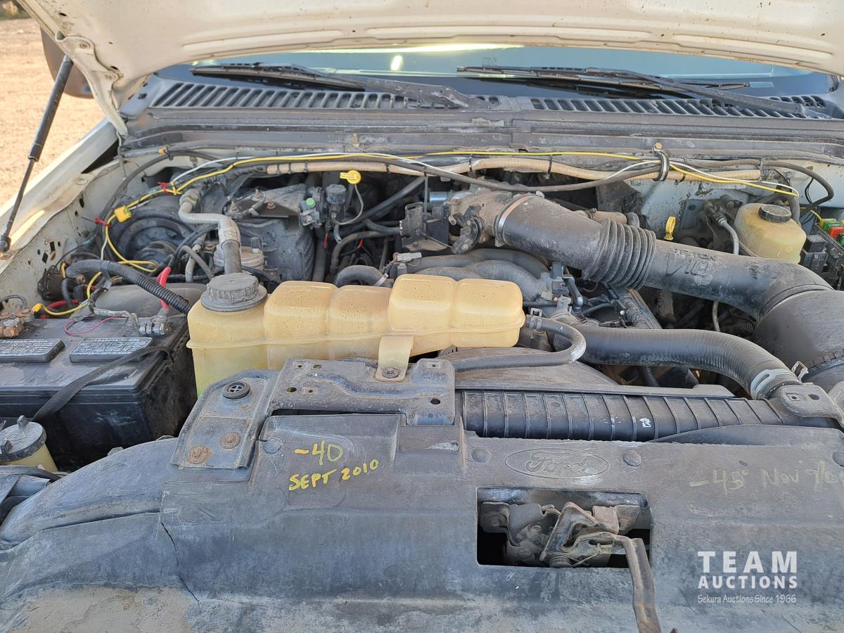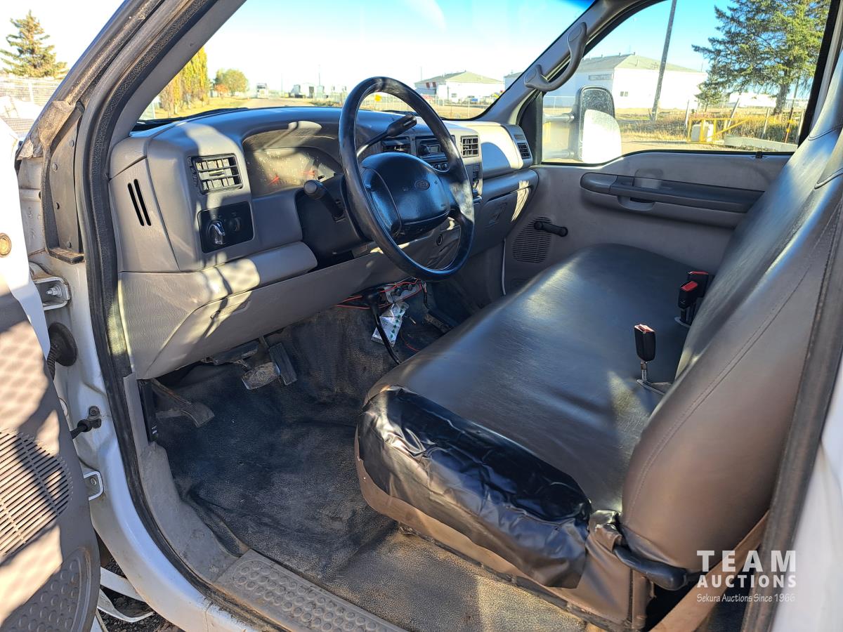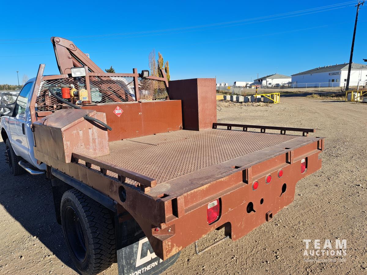 Ford TRITON 6.8 V10 310 HP gas engine, electric engine block heater, automatic transmission, A/C, cruise control, radio, hydraulic wet kit, steel tool boxes, chain holders, FASSI F20 21 knuckle crane, outriggers, spring suspension, 225/70R19.5 front tires, 225/70R19.5 rear tires
