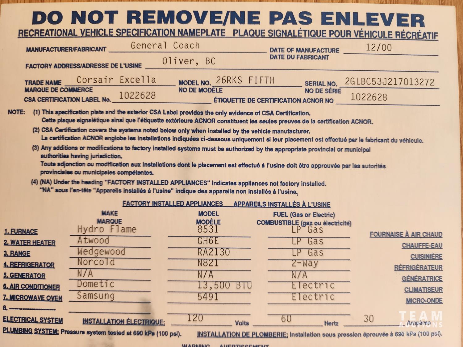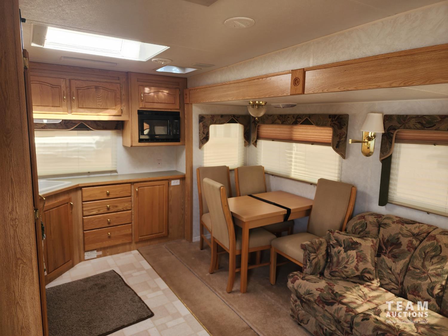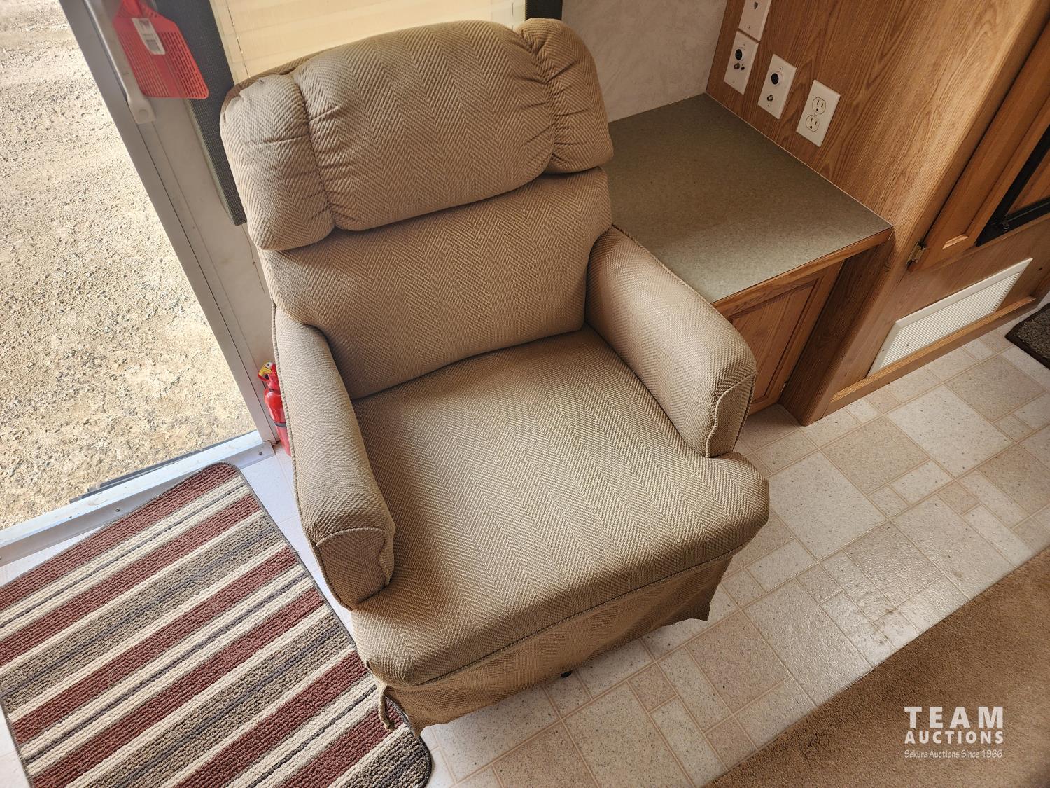 (1) slide out, fridge, stove, microwave, dinette, couch, A/C, furnace, queen front bedroom, bathroom with toilet, sink and shower, awning, 235/85R16 tires