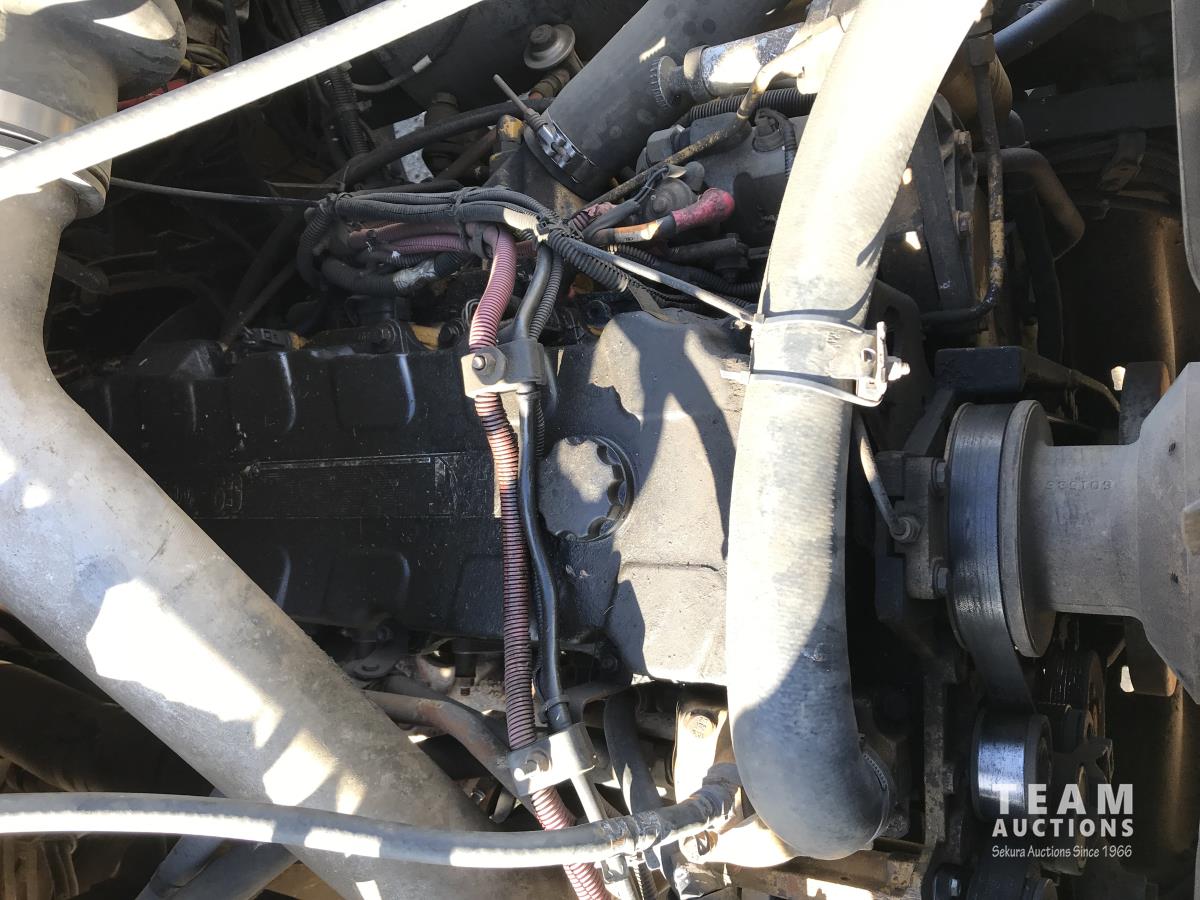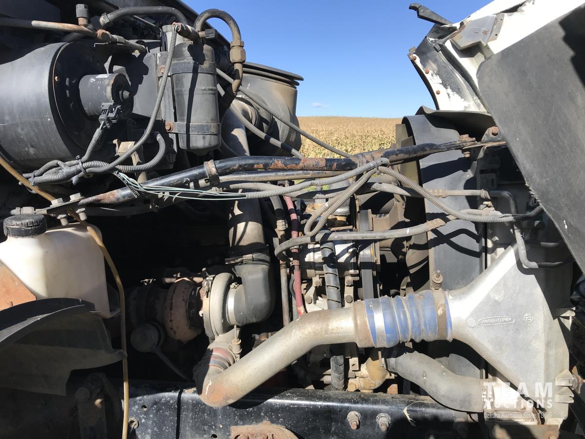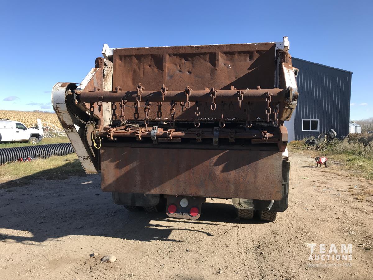 Caterpillar C9 8.8 L 6 cylinder diesel engine, Eaton Fuller 10 speed manual transmission, 18' manure box with horizontal spreader, air ride suspension, 11R24.5 tires