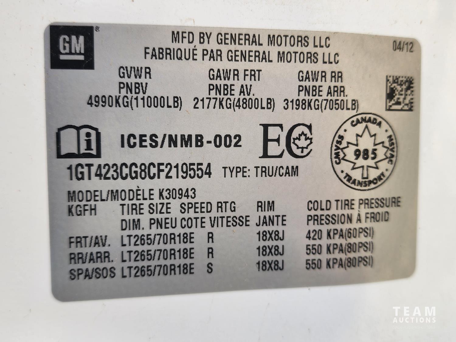 - 1GT423CG8CF219554