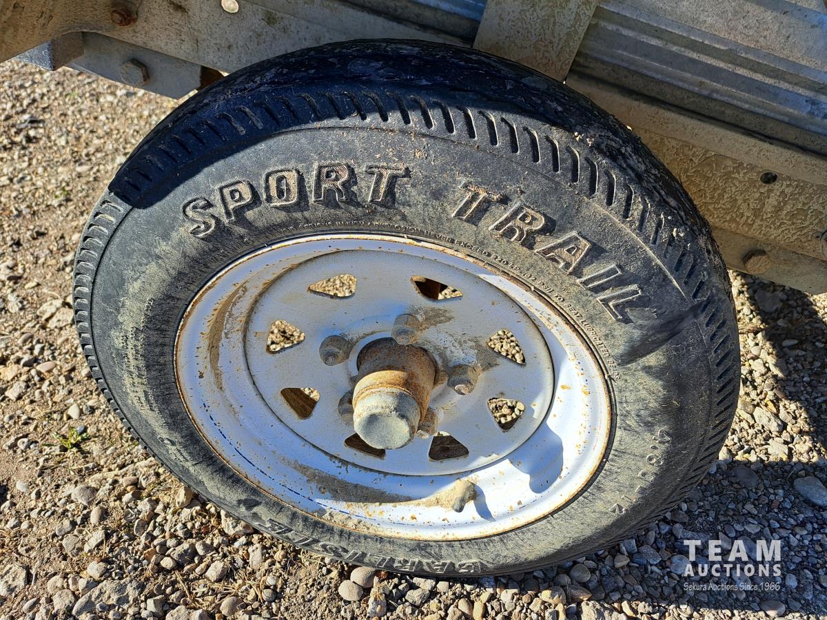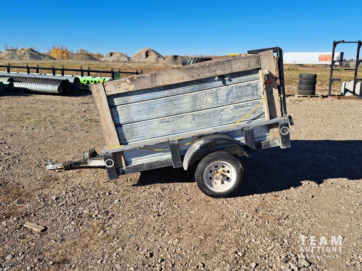 3 ft high sides, 4.8 - 12 tires, 1-7/8 inch ball hitch, rear ramp tailgate, 2 galvanized 6 ft x 9 inch ramps
