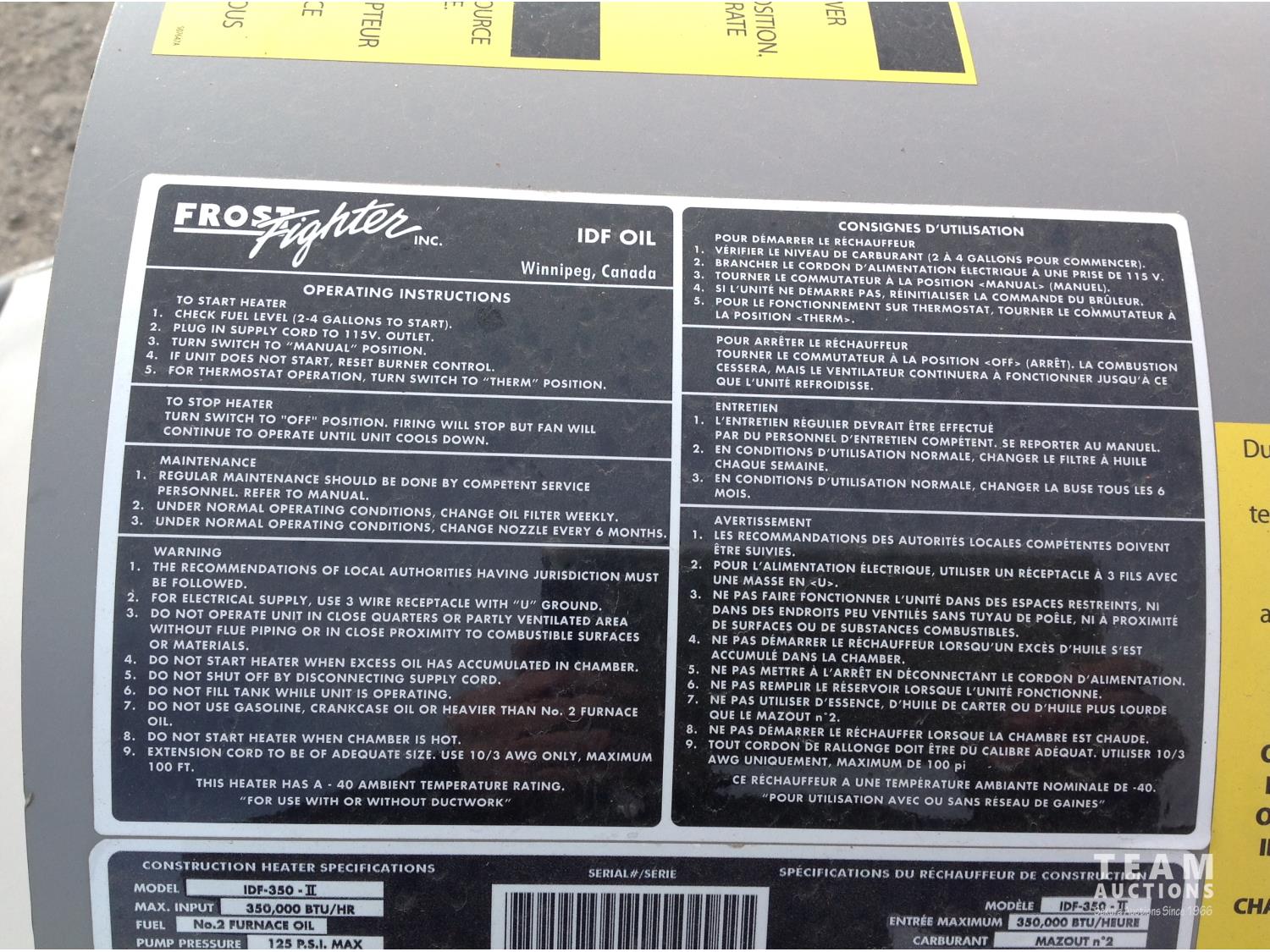 183 2014 Frost Fighter IDF-3520II 350,000 BTU Indirect Diesel Fired Construction Heater